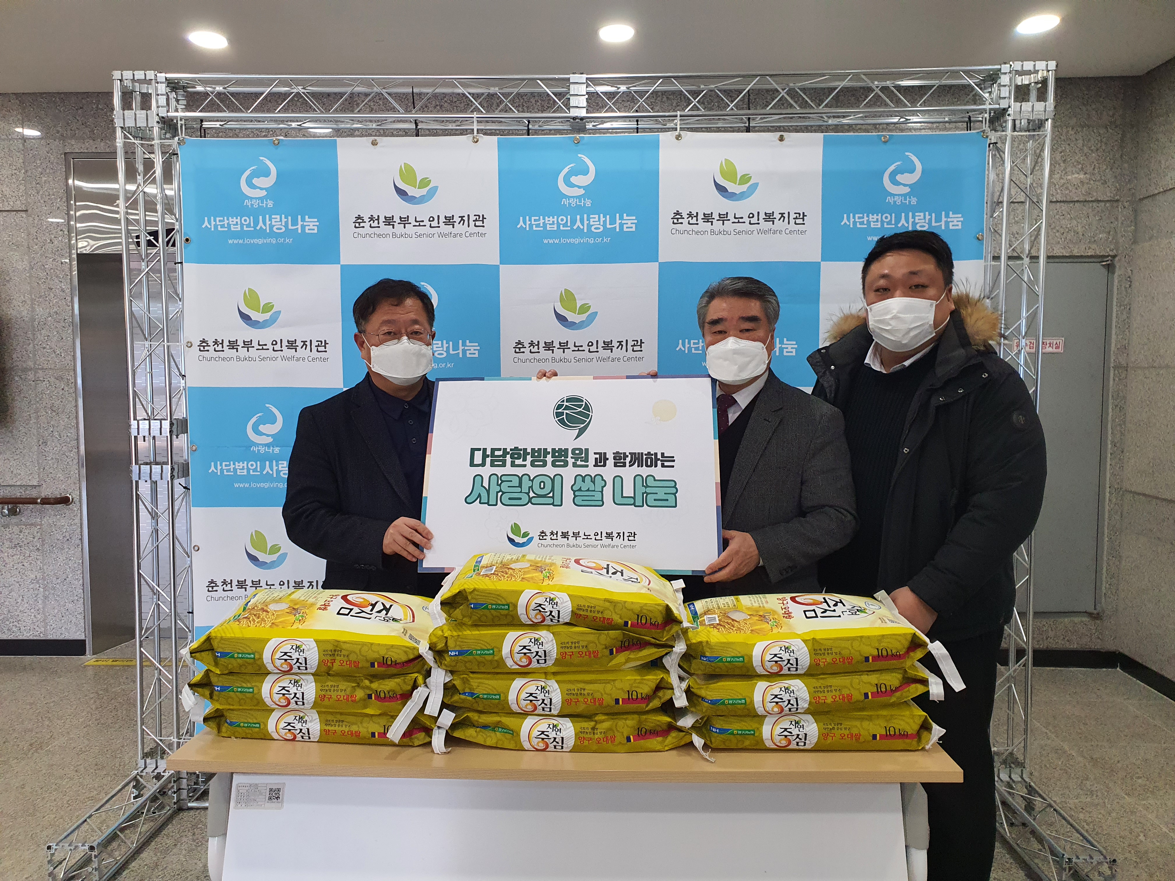 [강원사회복지신문 홍기한 기자]춘천북부노인복지관(관장 박재호)은 지난 1월 28일(금) 다담한방병원(병원장 조한솔, 오지영)과 지역사회 협력 네트워크 구축을 위한 협약을 체결하고 설 명절을 맞이하여 쌀 100kg을 후원했다. 이번 협약을 통해 어르신들을 대상으로 지역소외계층을 위한 사회활동 및 물품을 지원하고 의료비...