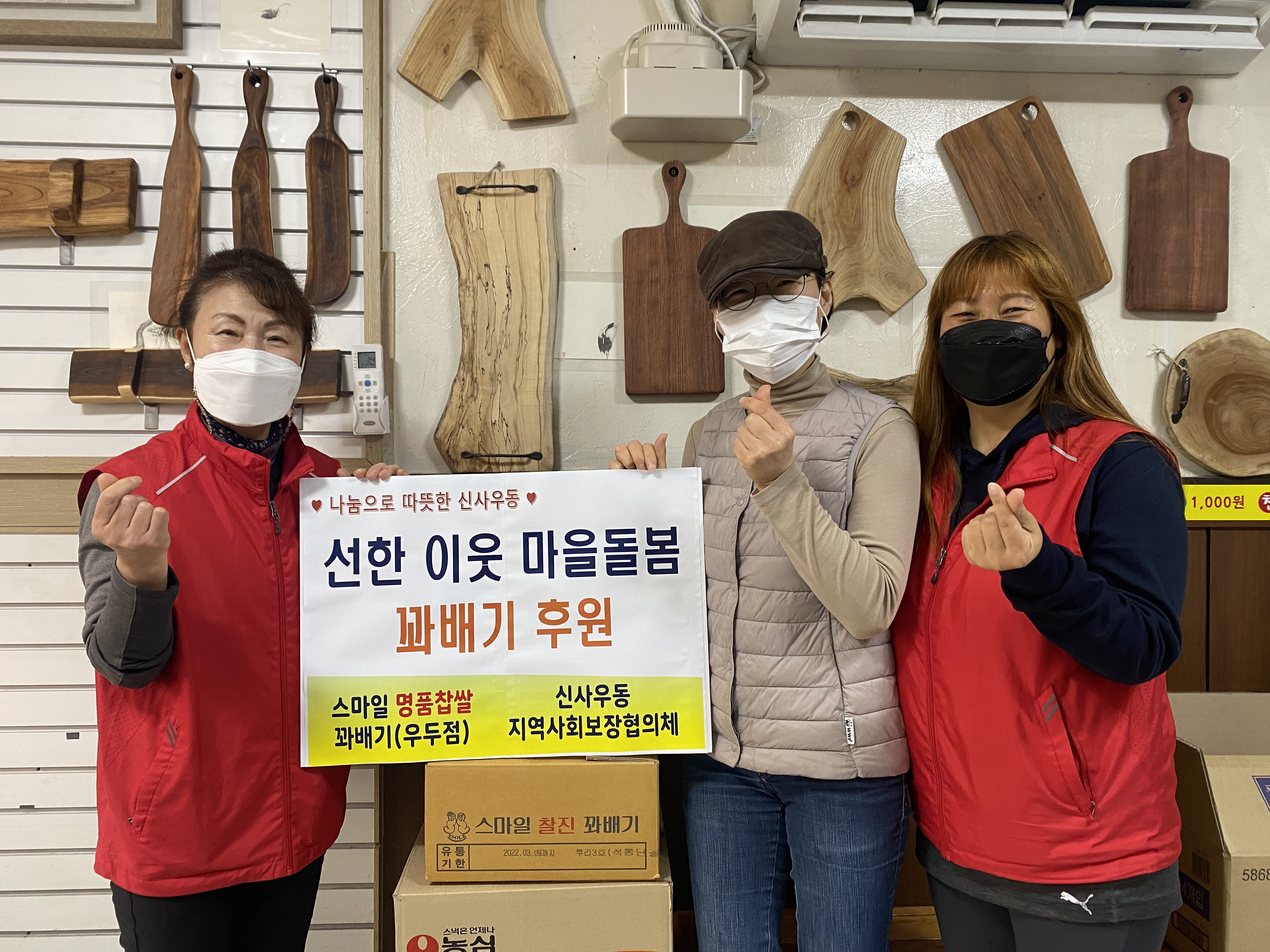 [강원사회복지신문 홍기한 기자]=스마일명품참쌀꽈배기 우두점(대표:강미자)은 지난 12월 8일 춘천시 우두동 관내 독거노인과 중증장애인 등 취약계층 18가구와 청소년 쉼터 보금자리에 꽈배기 100개를 후원했다.