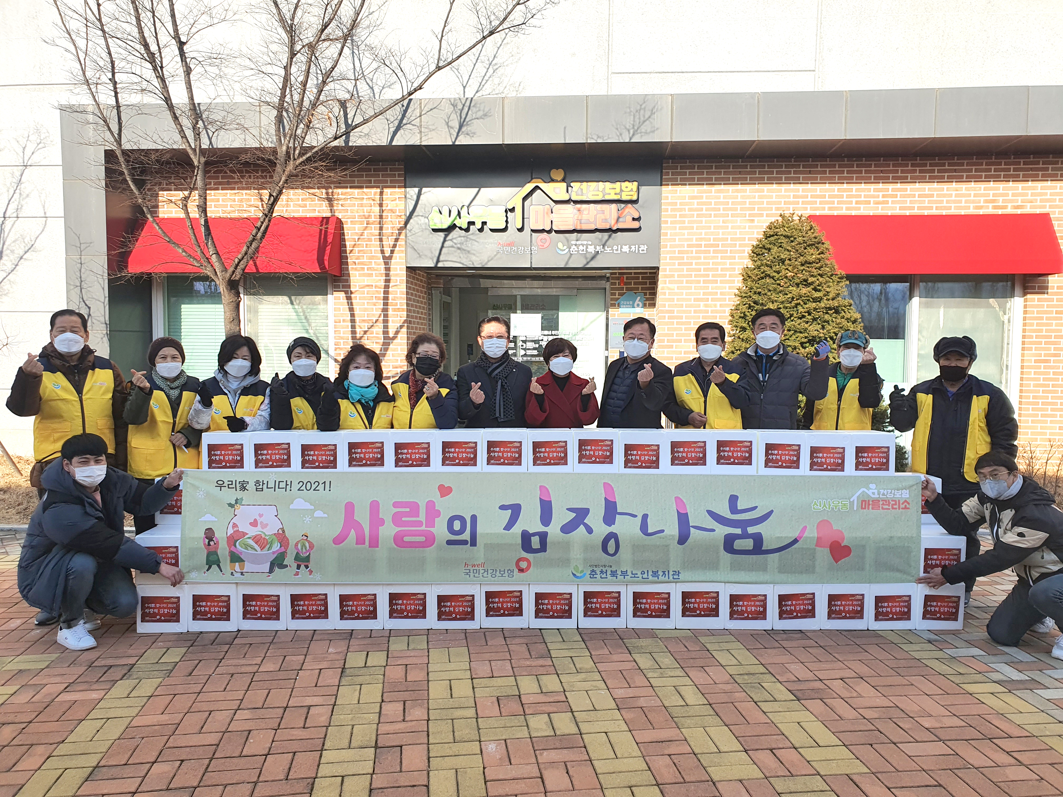 [강원사회복지신문 홍기한 기자]=춘천북부노인복지관(관장 박재호)에서 운영중인 '신사우동 마을관리소'에서는 지난 12월 14일 오전 10시에 사랑의 김장나눔 행사를 개최했다. 이날 전달된 김장김치는 춘천시 우두LH 천년나무 1단지 아파트에 거주하시는 어르신댁에 총 100박스를 전달하였으며, 전달행사에는 춘천북부노인복...