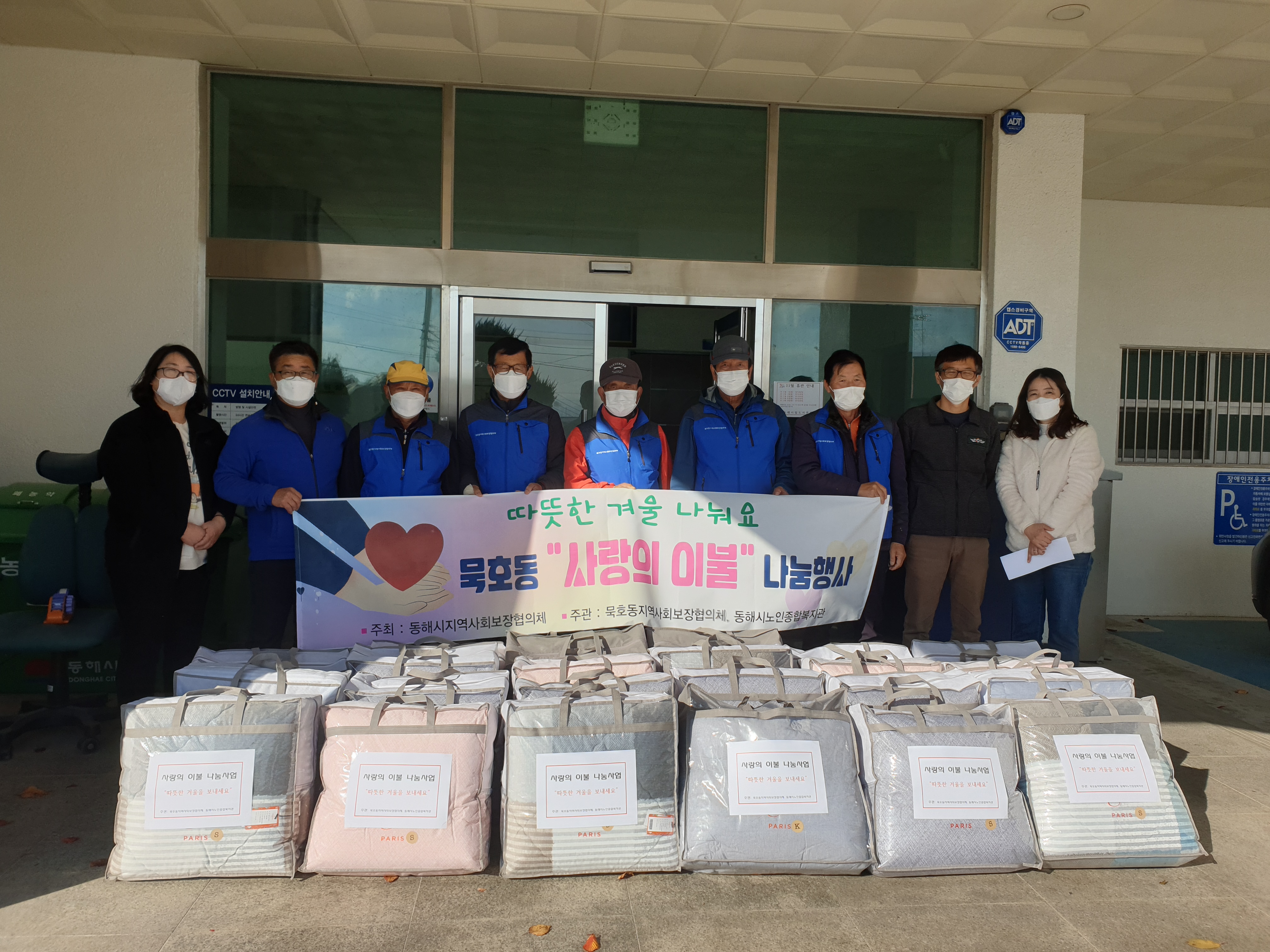 [강원사회복지신문 서은진 기자]=동해시 묵호동지역사회보장협의체(위원장 정의철)와 동해시노인종합복지관(관장 양동호)은 지난 11월 26일 동절기 취약계층을 위한 겨울이불 나눔행사를 묵호동행정복지센터에서 진행했다고 밝혔다. 이날 묵호동 지역사회보장협의체와 동해시노인종합복지관에서는 300만원 상당의 겨울이불 3...
