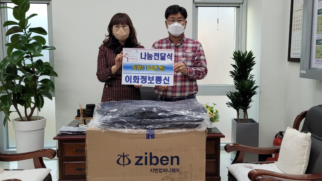 [강원사회복지신문 서은진 기자]=이화정보통신(대표 전영선)은 지난 12월 7일 원주시 무실동 행정복지센터를 방문해 지역 저소득 독거 어르신 20가구에 지원할 160만 원 상당의 겨울 점퍼를 전달했다.