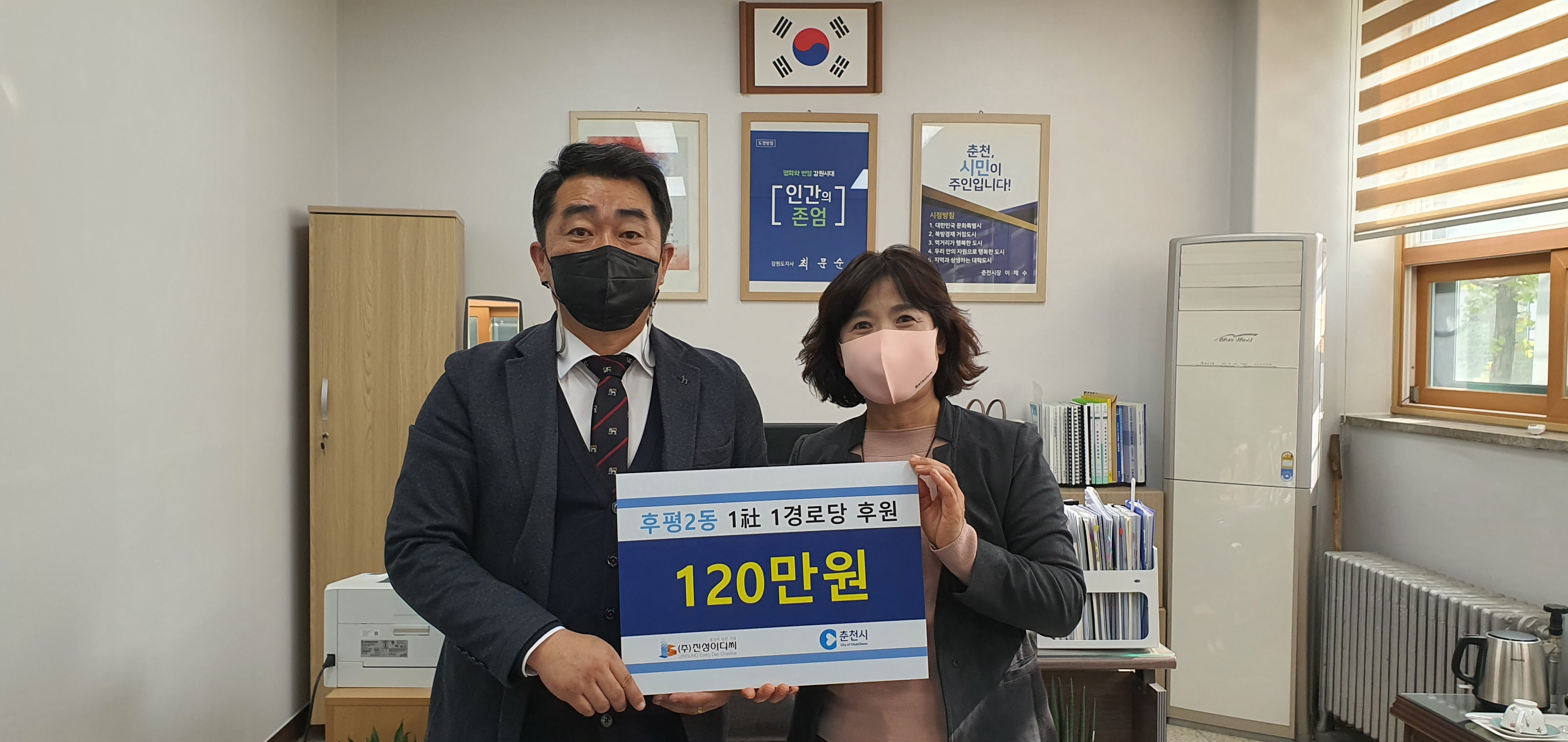 [강원사회복지신문 유경수 기자]=소프트웨어 개발 전문 기업 (주)진성이디씨(대표:홍성걸)는 지난 10월 21일 춘천시 후평2동 행정복지센터(동장:유미숙)를 방문해 경로당 지원을 위한 기부금(120만원)을 전달했다.