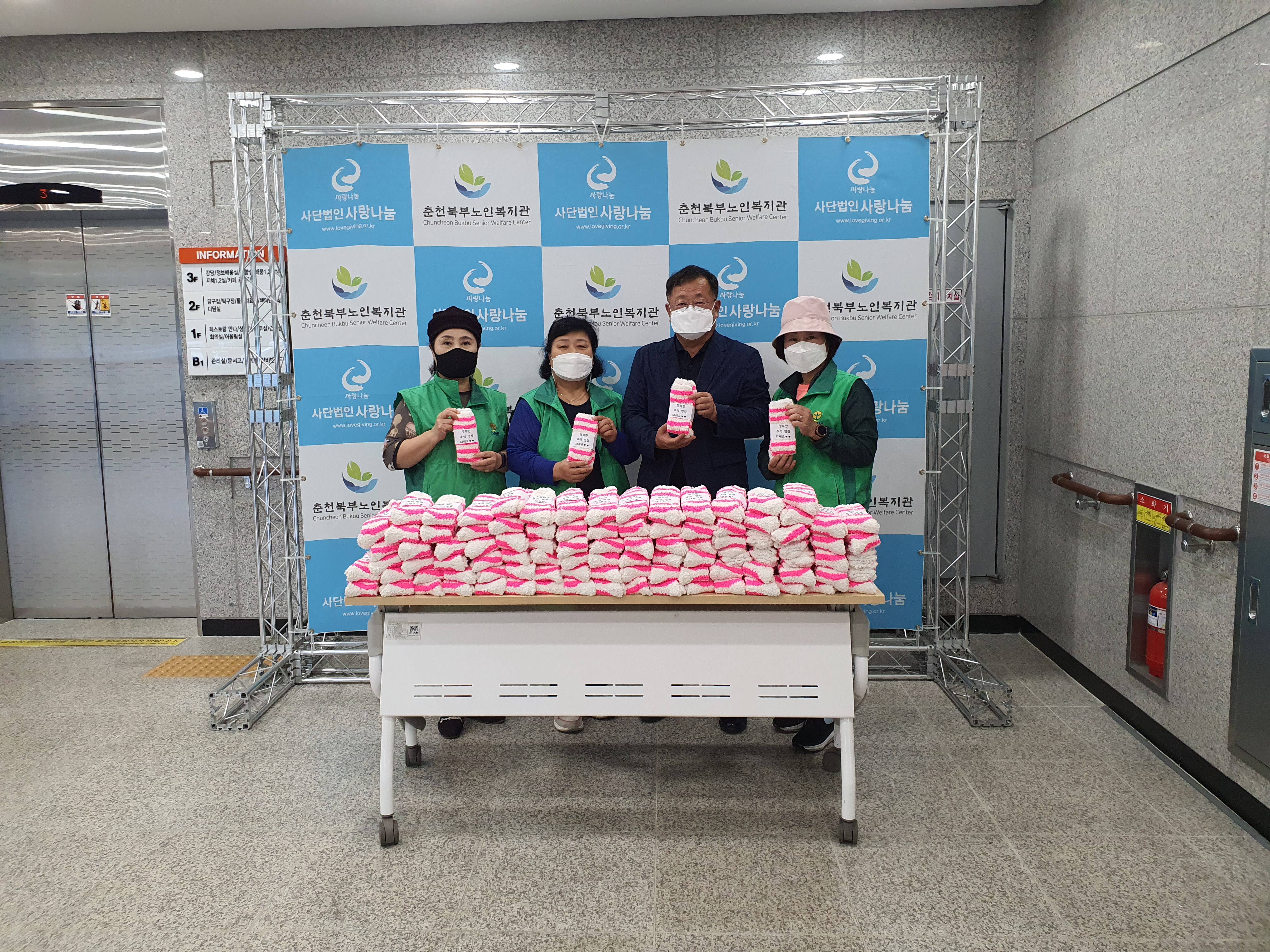 [강원사회복지신문 홍기한 기자]=새마을문고 중앙회 춘천시지부(회장 이희순)은 지난 8월 31일 지역사회 취약계층 지원을 위해 수면양말 100개를 춘천북부노인복지관(관장 박재호) 측에 전달했다.