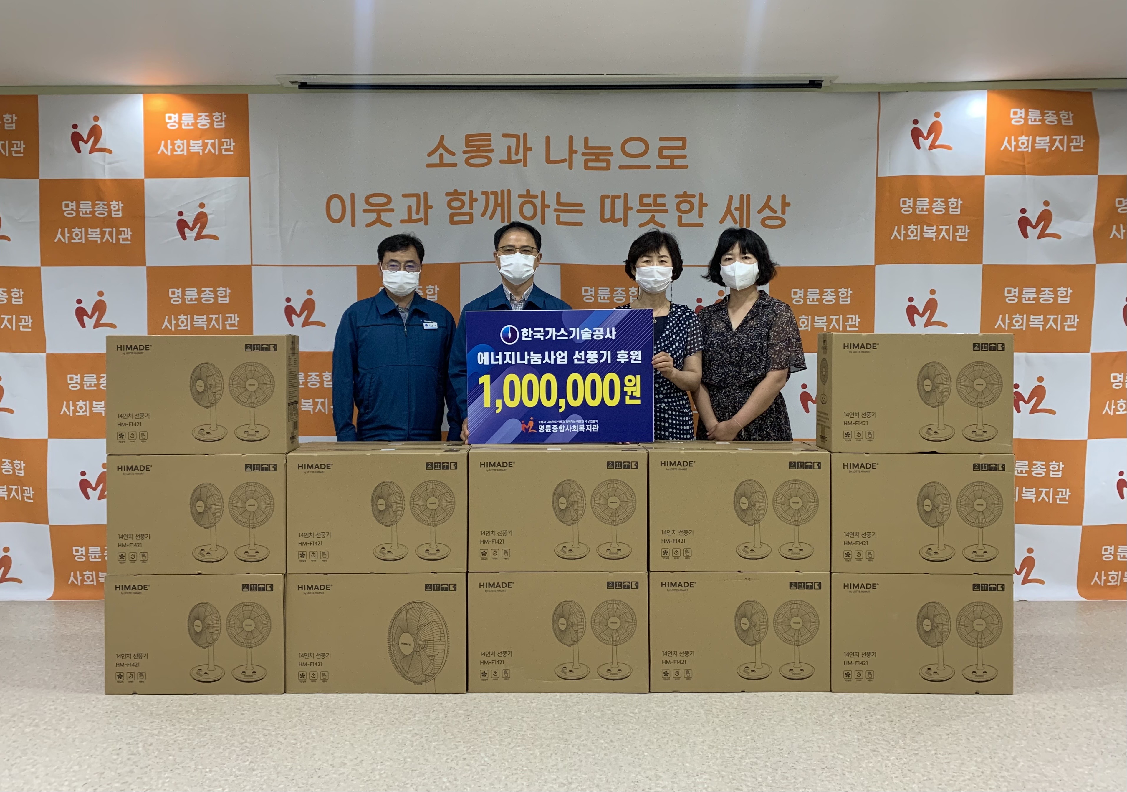 [강원사회복지신문 홍기한 기자]=한국가스기술공사(장경석 지부장)는 지난 7월 28일 오전 10시 원주 명륜종합사회복지관(박현숙 관장) 강당에서 에너지나눔사업의 일환으로 1백만원 상당의 선풍기 22대 후원 전달식을 진행하였다. 선풍기는 명륜종합사회복지관 노인맞춤돌봄서비스 권역 중 원주시 명륜1동, 개운동의 주거취약...