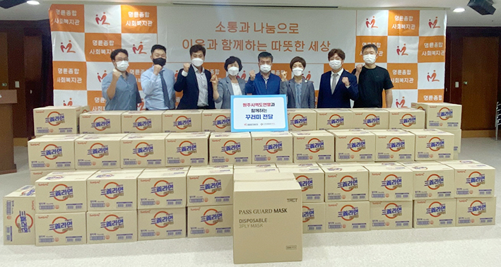[강원사회복지신문 서은진 기자]=원주시역도연맹에서 지난 6월 24일 원주 명륜종합사회복지관(관장 박현숙)을 방문, 노인맞춤돌봄서비스팀에 라면과 마스크를 후원하였다. 노인맞춤돌봄서비스 전 대상자 약 550여분에게 생활지원사선생님이 방문하여 말벗서비스와 함께 지원 될 예정이다. 명륜종합사회복지관 관계자는 외롭고...