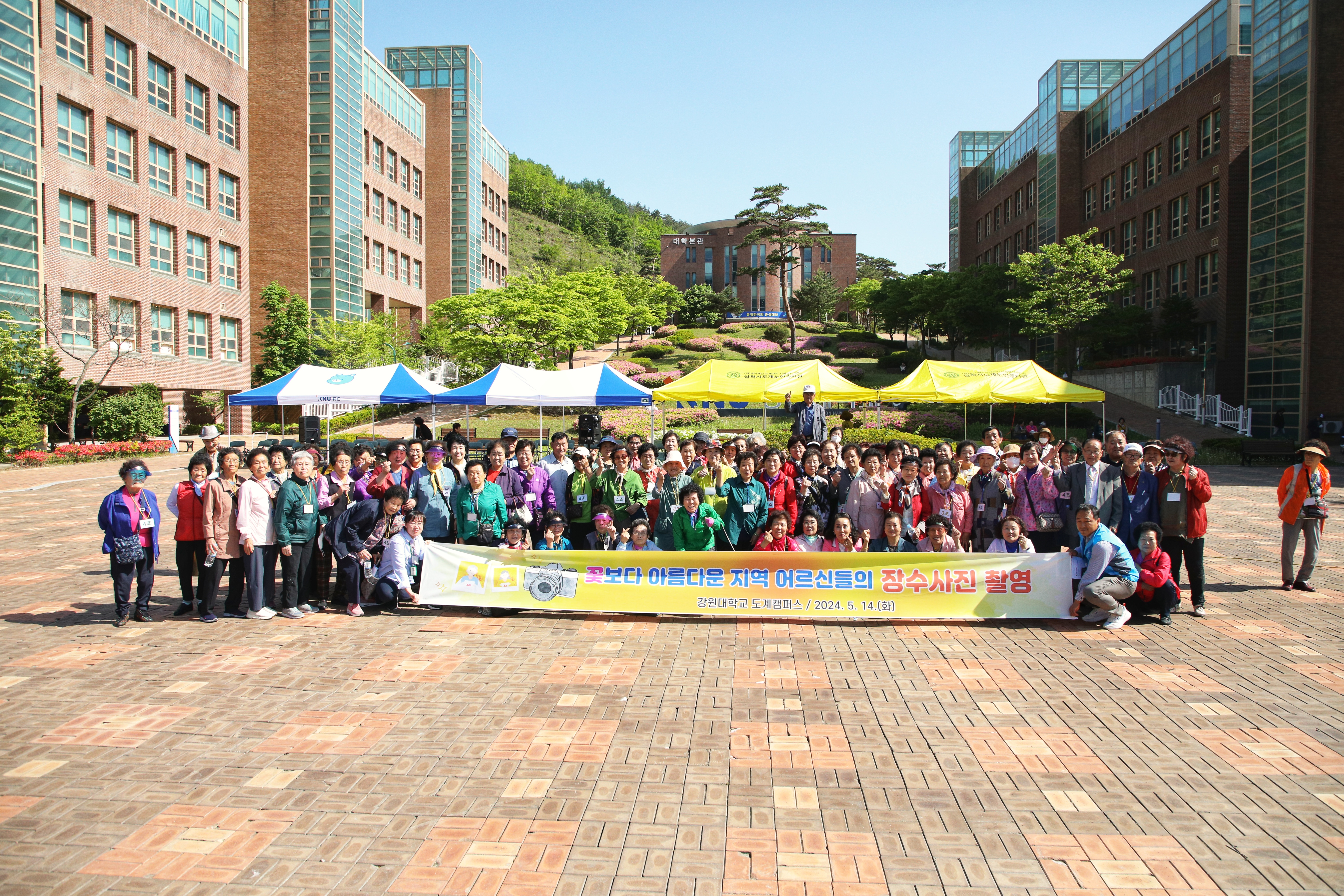 삼척시도계노인복지관(관장 정미정)에서는 강원대학교 도계캠퍼스의 후원 및 주관으로, 지난 5월 14일 ‘지역 어르신 초청 도계캠퍼스 집중교육 프로그램’을 진행하였다. 이번 행사에는 160여 명의 지역 어르신들이 참석하여 아름다운 계절에 핀 예쁜 꽃들과 함께 오래 남을 ‘장수사진’을 촬영하였다. 또한 대학교에서 학...
