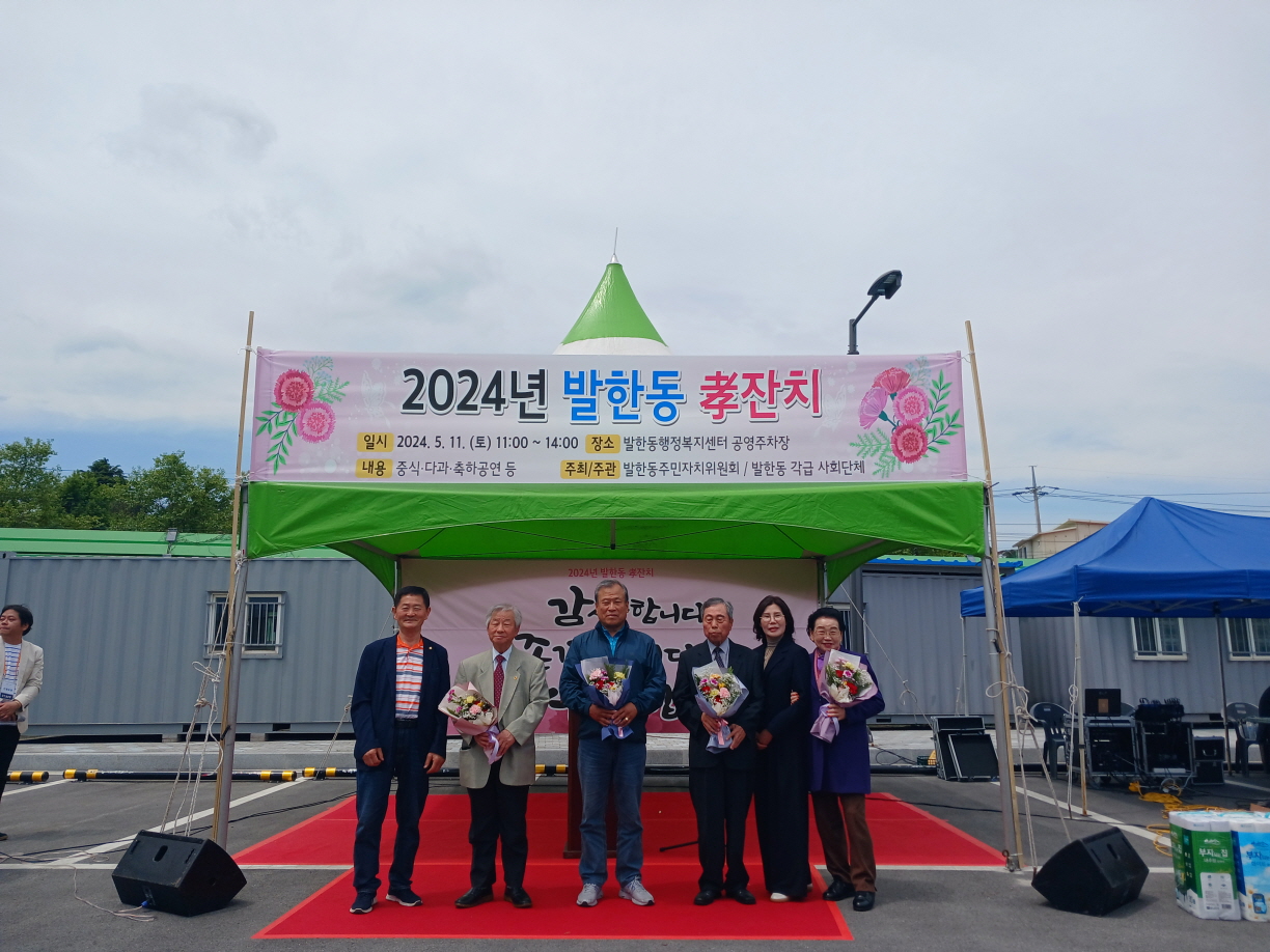 5월 11일 발한동행정복지센터 주차광장에서 2024년 발한동 효잔치 펼쳐 동해시 발한동주민자치위원회(위원장 오봉은)는 지난 5월 11일 발한동행정복지센터 주차광장에서 발한동 효잔치를 성황리에 마쳤다고 밝혔다. 이날 열린 효잔치는 심규언 시장과 이동호 의장 등을 비롯한 어르신 400여 명이 참석한 가운데 열렸으며, 올...