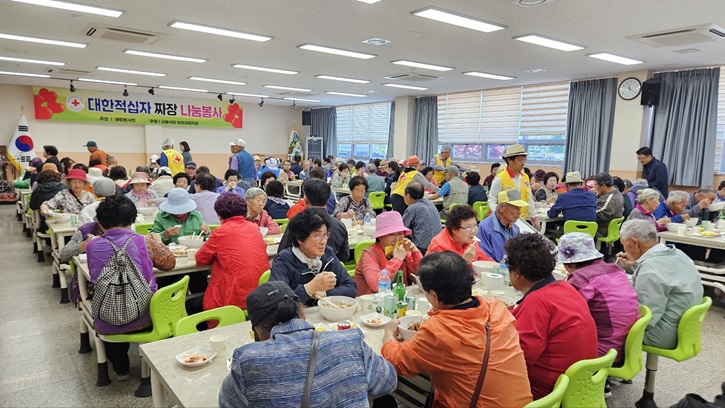 대한적십자사 강림애림봉사회(회장 임한규)는 지난 5월 3일 강림건강복지센터에서 횡성군 강림면 관내 어르신 300명을 대상으로 짜장면 나눔 행사를 진행했다. 농업인과 자영업자, 회사원 등으로 구성된 강림애림봉사회는 2013년도부터 회원 이선환(강림 금풍식당/자영업) 씨의 재능기부로 짜장면 나눔 행사를 추진해 왔고, ...