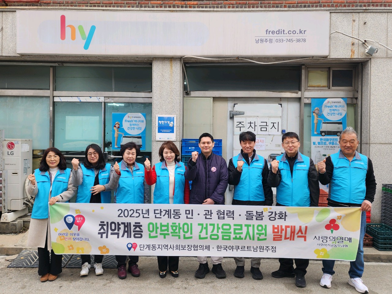 원주시 단계동지역사회보장협의체(공동위원장 김주백·박해정)는 지난 3월 12일 한국야쿠르트 남원주점에서 협의체 위원, 연계기관 관계자 등이 참석한 가운데, ‘2025 취약계층 안부확인 건강음료 전달 발대식’을 가졌다. ‘안부확인 건강음료 전달 사업’은 단계동 취약계층 중 밀착 돌봄이 필요한 고령자, 심신미약자 10...