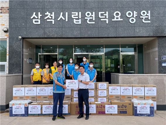 [강원사회복지신문 최재석 기자]=삼척시립원덕요양원(원장 정연선)은 지난 9월 19일(화) 추석 명절을 맞이하여 한국가스공사 삼척기지본부(본부장 한창훈)에서 입소 어르신을 위한 기저귀, 물티슈 등 200만 원 상당의 생활용품을 기증하고 대한적십자사 삼척지구협의회(회장 진광선) 원덕봉사회의 지원으로 추석맞이 천년학 ...