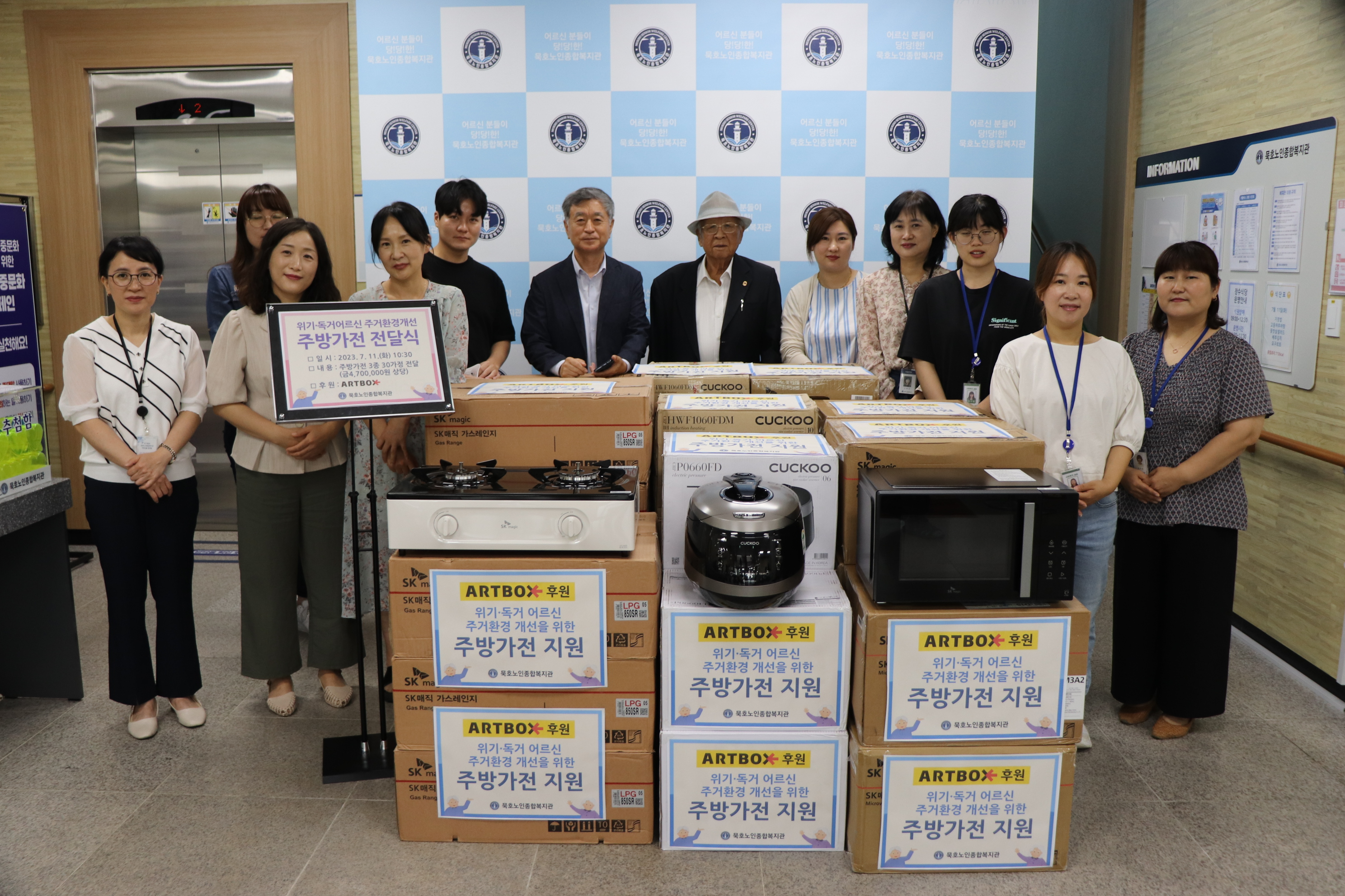 [강원사회복지신문 김종한 기자]=동해 묵호노인종합복지관(관장 염규성)은 한국의 팬시용품 전문 유통업체인 아트박스(대표 조석현) '아사모(아트박스의 사랑을 나누는 모임)'에서 후원한 주방가전 30점을 주거환경 개선이 시급한 사례관리 어르신 30가구에 전달하는 전달식을 7월 11일 10시 30분에 진행하였다고 밝혔다. 아...
