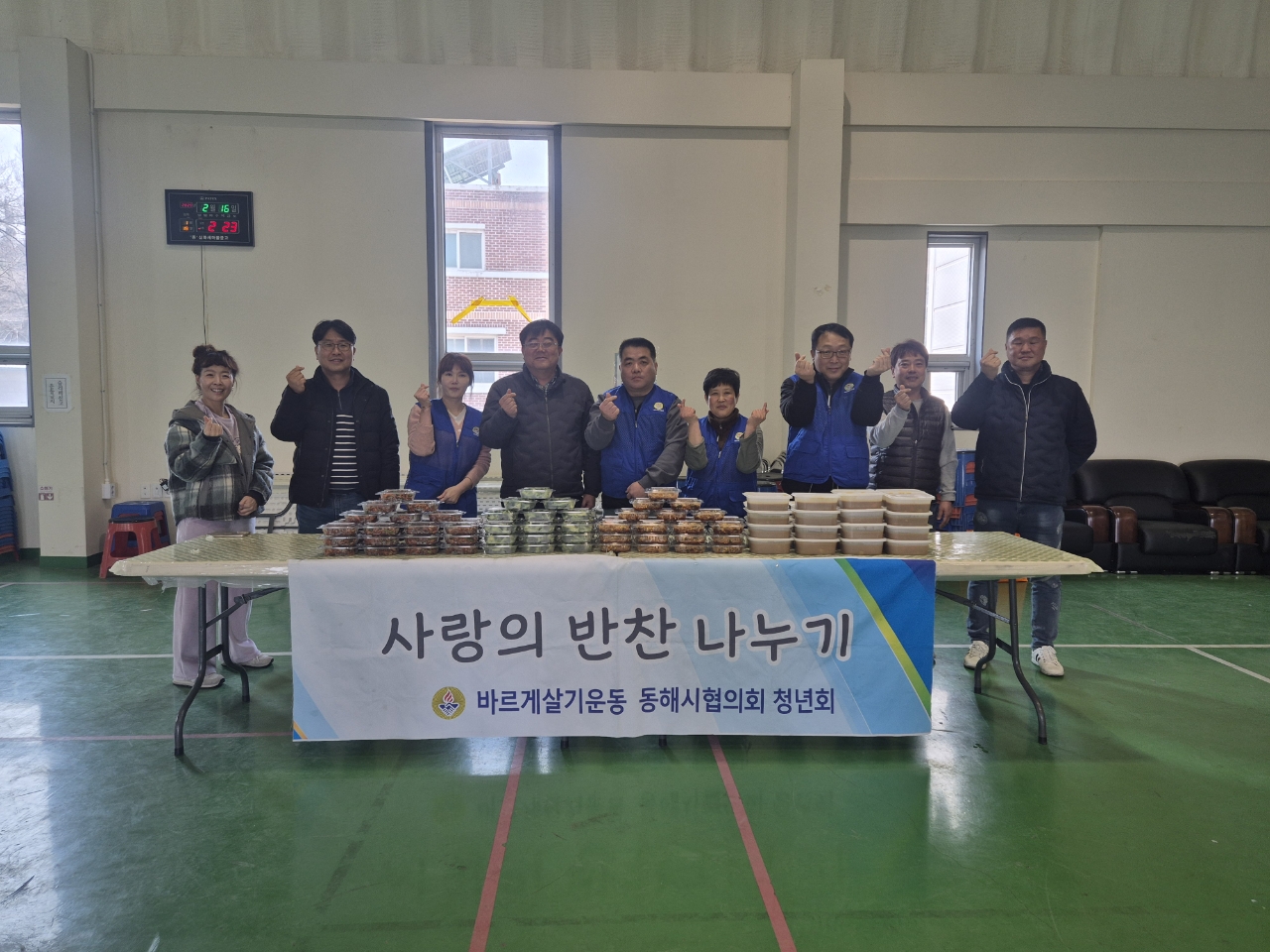 지난 2월 16일 바르게살기운동 동해시협의회 청년회(회장 김종일)에서 삼화동 다목적회관에서 직접 밑반찬을 만들어 삼화동에 전달하였다. 만든 밑반찬은 어르신들이 드시기에 안성맞춤인 콩나물무침, 카레, 브로콜리무침, 마늘쫑새우볶음으로, 총 100팩을 지원하여 행복드림냉장고를 통해 삼화동 관내 취약계층에게 골고루 ...