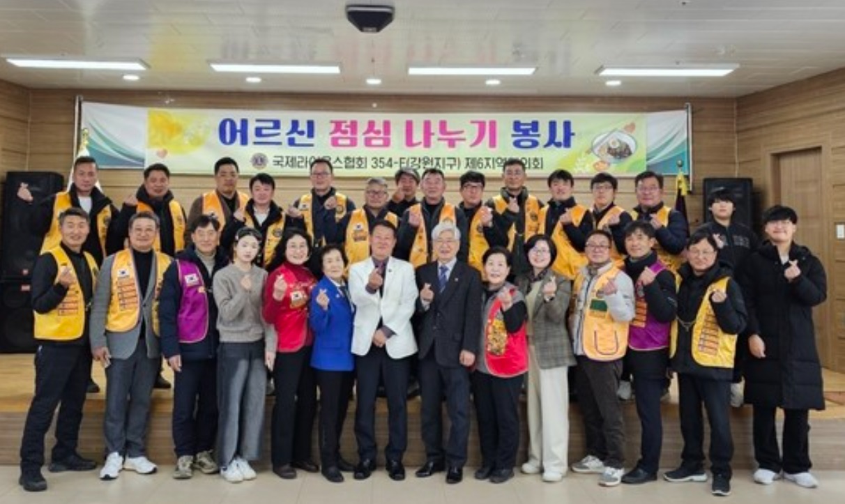 국제라이온스협회 354-E지구 제6지역협의회(지역위원장 최대성)는 지난 2월 18일 태백시 황연동 노인복지관에서 지역 어르신 300여 명에게 짜장면을 대접하고 간식을 증정하는 ‘어르신 점심 나누기 봉사활동’을 펼쳤다. 이번 봉사활동은 국제라이온스협회 354-E지구 제6지역협의회 회원들이 참여해 지역 어르신들의 건강과...