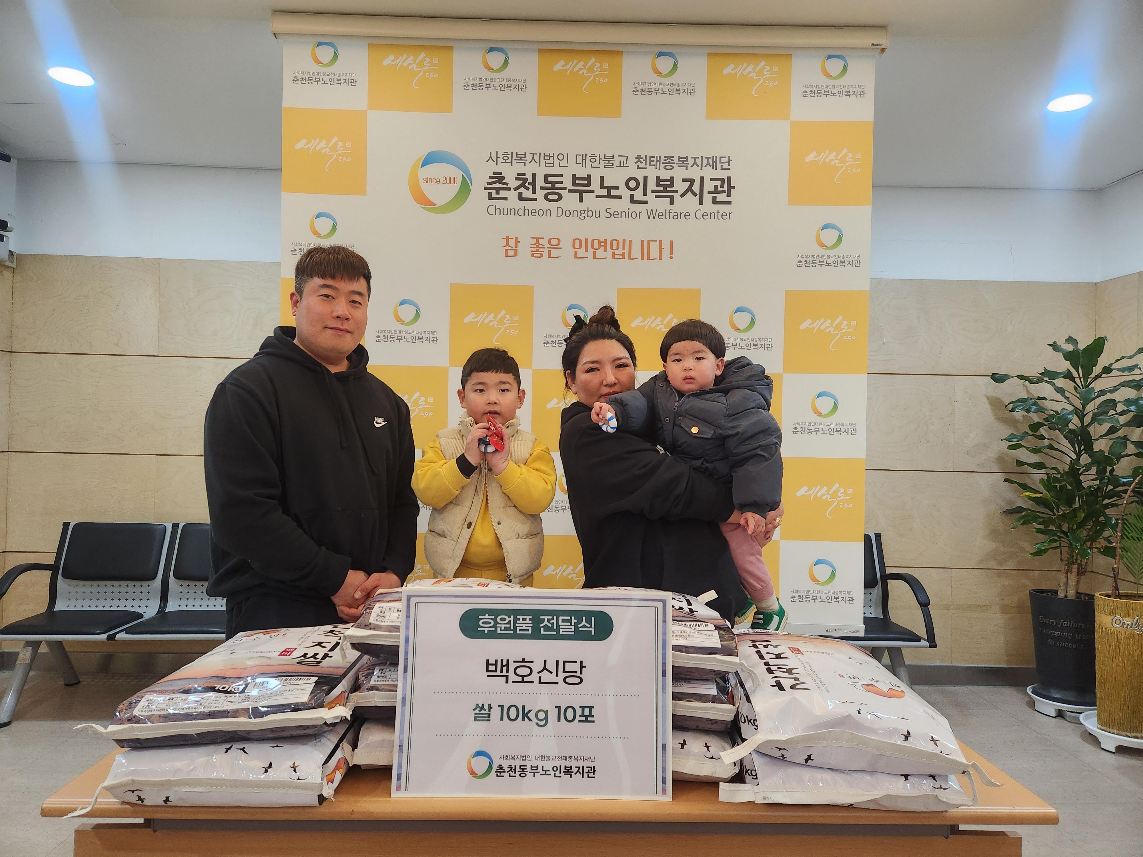 백호신당(대표 채종진)은 2월 28일(금) 춘천동부노인복지관에 취약계층 어르신들을 위한 후원을 진행하였다. 이번 후원은 지역 내 취약계층 어르신들의 식생활을 지원하기 위해 마련되었으며, 쌀 10kg 10포를 준비하였다. 백호신당 채종진 대표는 “지역사회를 위한 나눔을 실천할 수 있어 기쁘며, 앞으로도 지속적으로 도움...