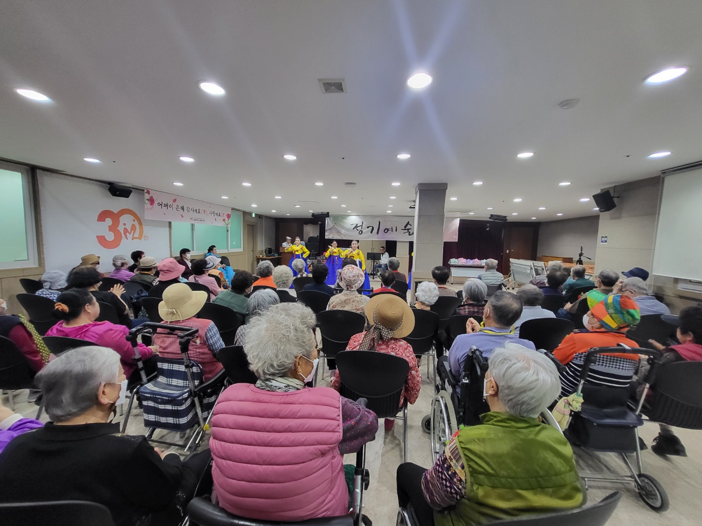 [강원사회복지신문 이정환 기자]=지난 5월 8일(월) 어버이날을 맞이해 (사)대한노인회철원군지회 2층에서 진행된 어버이날 행사에서 평화를 부르는아이들(회장.안선영)의 효도 공연이 진행되었다. 귀여운 율동과 노래, 소고춤으로 어르신들의 맘에 사랑을 채운 '평화를 부르는 아이들'은 직접 포장한 간식을 준비해 (사)대한...