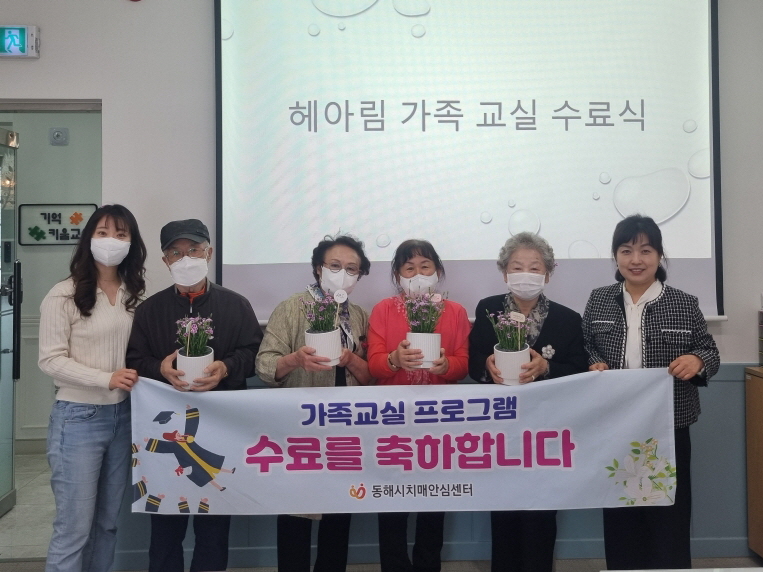 [강원사회복지신문 김종한 기자]=동해시(시장 심규언)가 지난 3월 8일부터 운영을 시작한 '2023년 1기 치매환자 가족지지프로그램' 수료식을 지난 최근 개최했다고 밝혔다. 올해 총 2기로 운영되는 가족지지프로그램은 동해시치매안심센터에 등록된 치매환자 및 경도인지저하 진단받은 환자의 가족과 보호자를 대상으로, 치매...