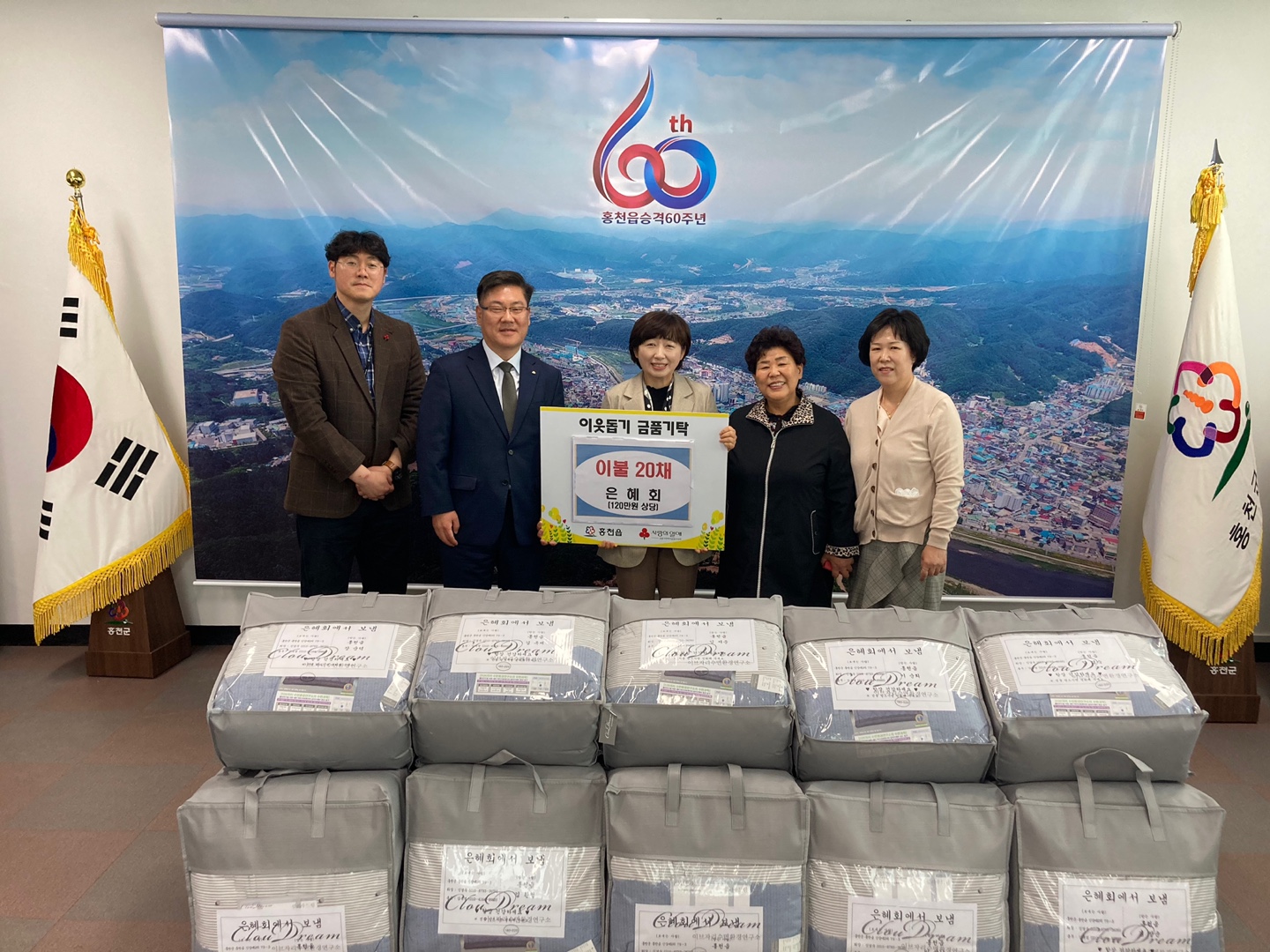 [강원사회복지신문 김종한 기자]=은혜회(회장 신경숙)는 지난 5월 2일 홍천읍행정복지센터를 방문하여 독거어르신을 위한 봄 이불 20채(120만원 상당)를 전달했다. 이번에 전달된 이불은 은혜회 회원들이 정성을 모와 마련한 것으로 가정마다 봄단장을 하고 있을 요즘, 독거어르신의 낡은 이불을 새 이불로 교체하여 쾌적한 ...