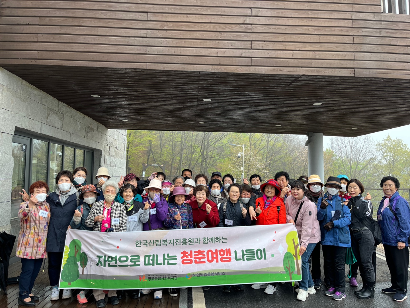[강원사회복지신문 홍기한 기자]=원주 명륜종합사회복지관 노인맞춤돌봄팀에서는 지난 4월 18일 화요일 취약계층 노인 39명을 대상으로 독거노인종합지원센터(한국산림복지진흥원)연계 산림치유 프로그램을 진행하였다. 산림치유 프로그램은 충북 제천시에 위치한 국립 치유의 숲에서 진행하였으며 어르신들은 안전교육을 시...