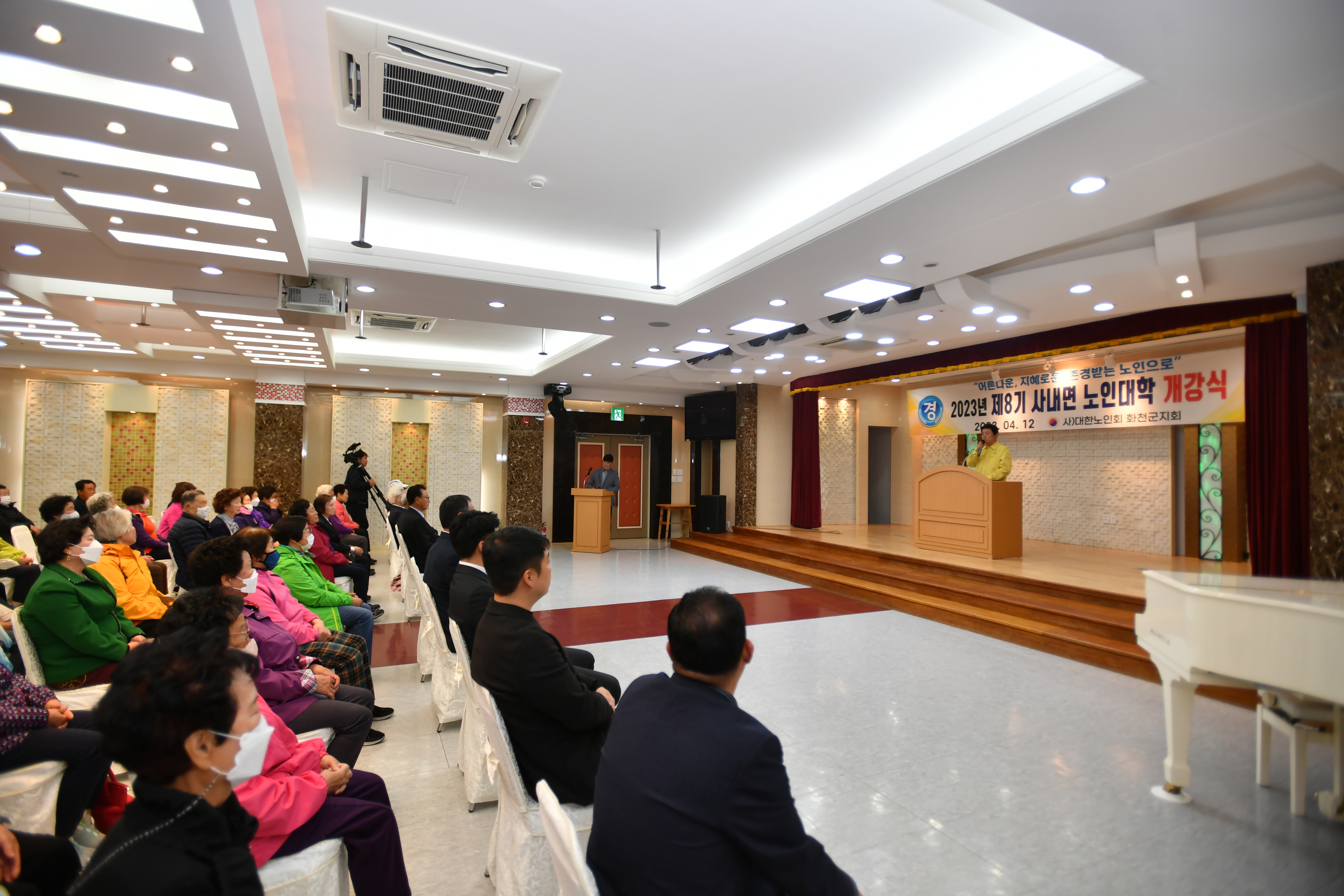 [강원사회복지신문 이정환 기자]=2023 화천군 사내면 노인대학 입학식이 지난 4월 12일 사내종합문화센터에서 최문순 화천군수, 노이업 군의장, 오세진 노인대학장, 이화원 군노인회장, 박대현 도의원, 조재규, 김명진 군의원을 비롯한 노인대학 입학생들이 참석한 가운데 열렸다.