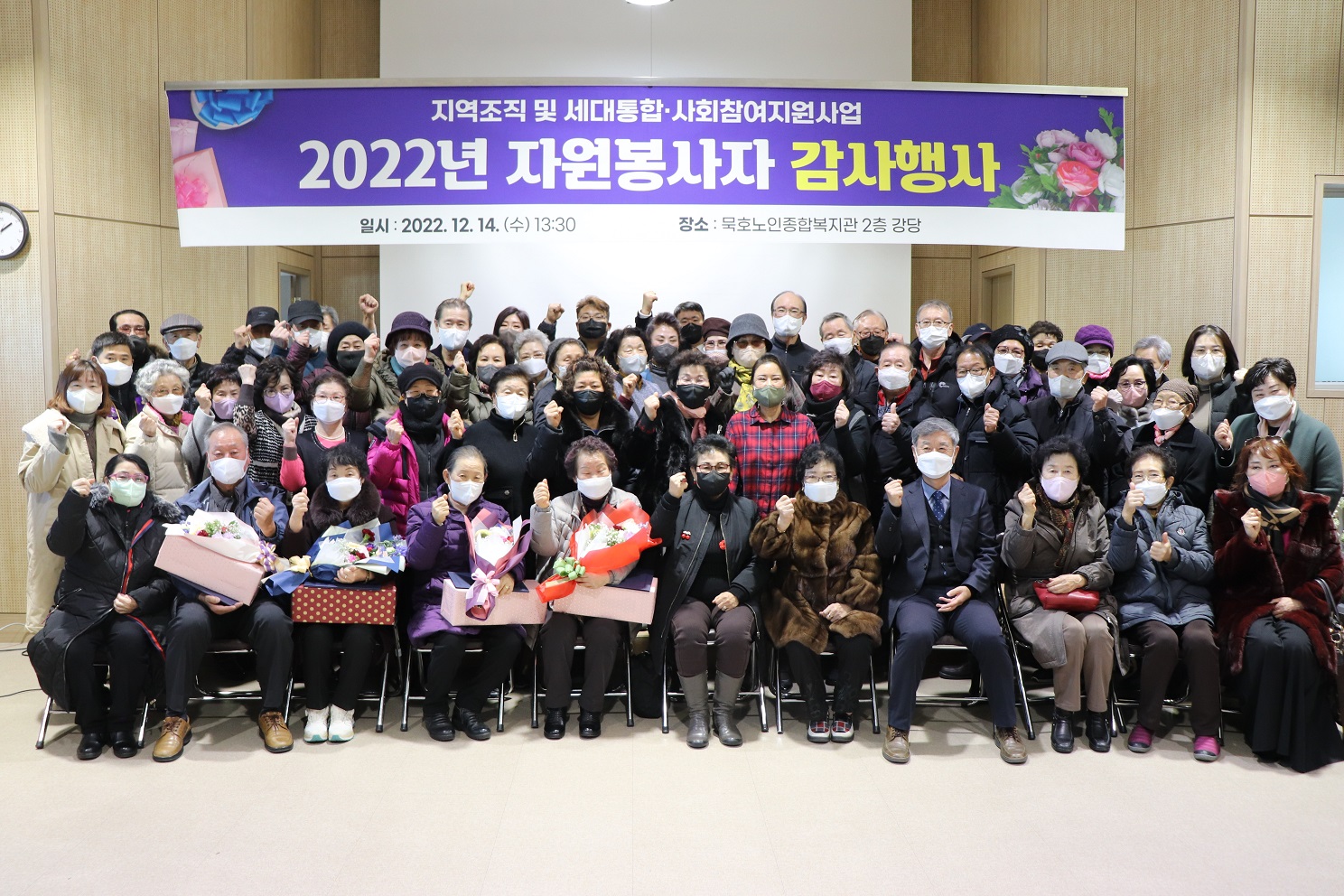 [강원사회복지신문 김종한 기자]=동해 묵호노인종합복지관(관장 염규성)은 12월 14일(수)에 복지관 강당에서 70여분의 자원봉사자 분들을 모시고 자원봉사자 감사행사를 개최했다. 이날 행사는 한 해 동안 나눔을 실천한 자원봉사자를 초대하여 봉사자 분들을 지지하고 격려하며 감사인사를 전하는 자리로 마련됐다. 이날 선...