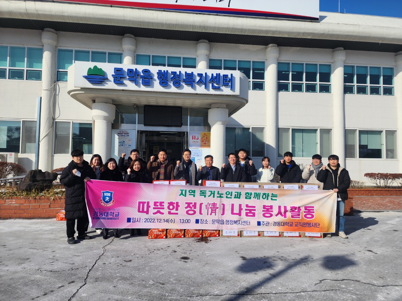 [강원사회복지신문 서은진 기자]=원주시 문막읍 소재 경동대 사회공헌센터(센터장 임용운)는 지난 12월 14일 문막읍행정복지센터를 찾아 김치 10kg 20박스와 라면 26박스(150만원 상당) 전달식을 가졌다. 경동대 사회공헌센터는 그간 많은 의료봉사, 재능기부 등 지역사회 봉사활동을 계속해 온 곳으로, 크리스마스를 맞이하...