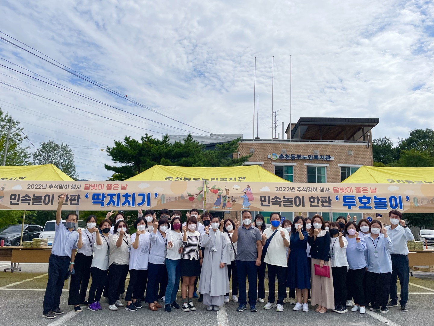 [강원사회복지신문 김도연 기자]=춘천동부노인복지관에서 지난 9월 14일 오전 10시 진행된 추석맞이 행사 '달빛이 좋은날' 행사가 성황리에 마무리됐다. 동부노인복지관은 추석을 맞아 복지관 회원 어르신들을 대상으로 딱지치기, 투호놀이와 같은 전통놀이를 체험하게 함으로써 고유의 우리 풍속이 담긴 행사를 기획하였다....