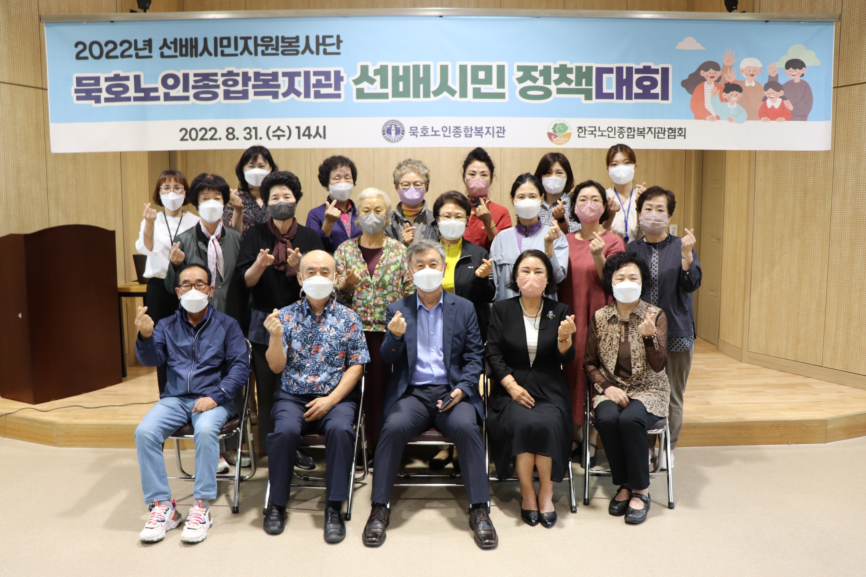 [강원사회복지신문 김종한 기자]=2022년 8.31.(수) 14시,묵호노인종합복지관 2층 강당 동해 묵호노인종합복지관(관장 염규성)은 지난 8월 31일 묵호노인종합복지관 강당에서선배시민 정책단 20여명, 관장, 복지관 직원이 참석한 가운데 선배시민 정책대회를 개최하였다고 밝혔다. 선배시민(senior citizen)이란 지역사회 및 ...