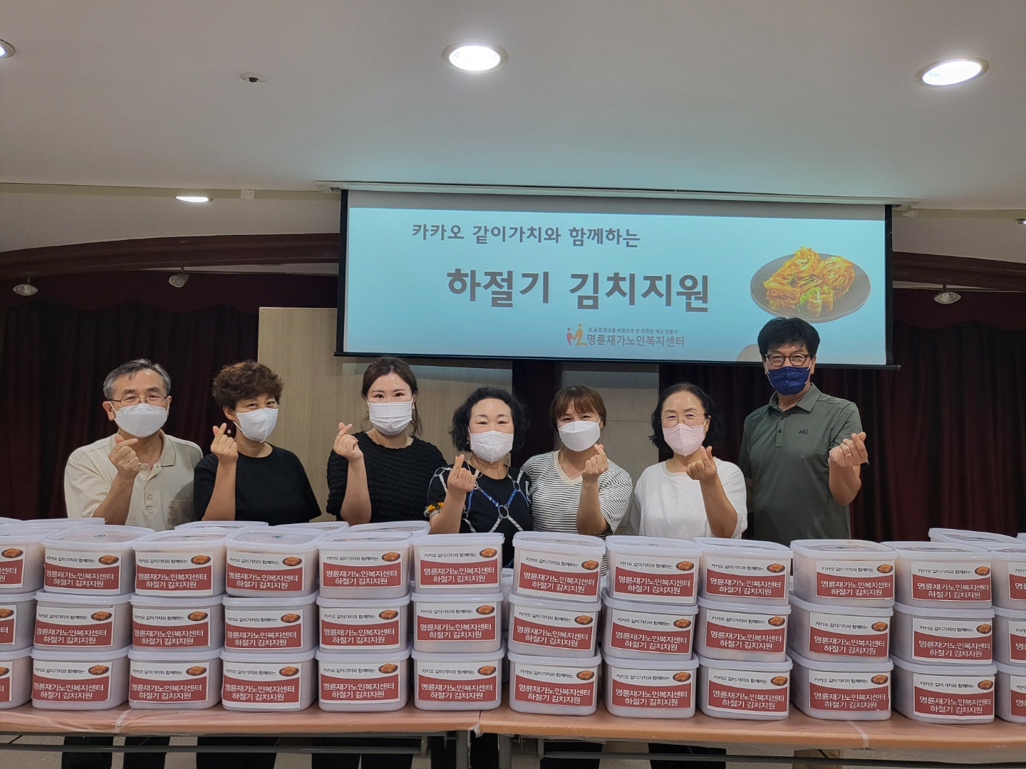[강원사회복지신문 서은진 기자]=명륜재가노인복지센터(센터장 김태임)는 지난 8월 9일(금) 재가 독거어르신을 대상으로 여름나기 사랑의 김치지원을 실시하였다. 올해 처음으로 지원된 하절기 김치는 다음 ‘카카오같이가치’를 통해 프로젝트 모금을 실시하여 모금된 120여만원의 후원금으로 진행되었다. 100원부터 10만원...