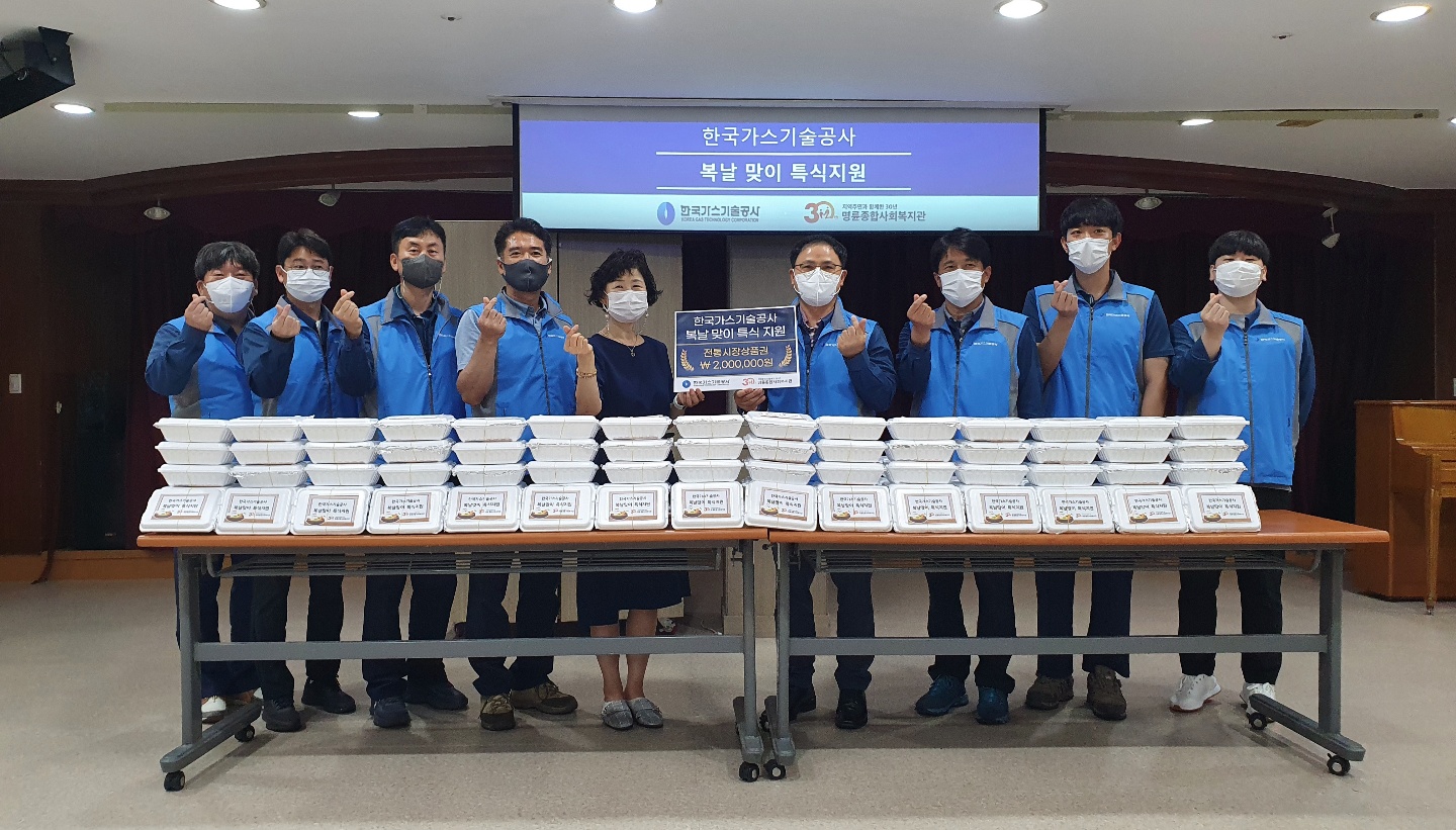 [강원사회복지신문 서은진 기자]=한국가스기술공사(장경석 지사장)에서 지난 8월 11일 명륜종합사회복지관(박현숙 관장)에 온누리상품권 200만원을 후원했다. 이는 명륜종합사회복지관의 결식노인에게 말복을 맞이하여 특별식을 지원하기 위한 것으로, 지역사회의 전통시장에서 닭강정을 구매해 점심식사와 함께 총 170명의 ...