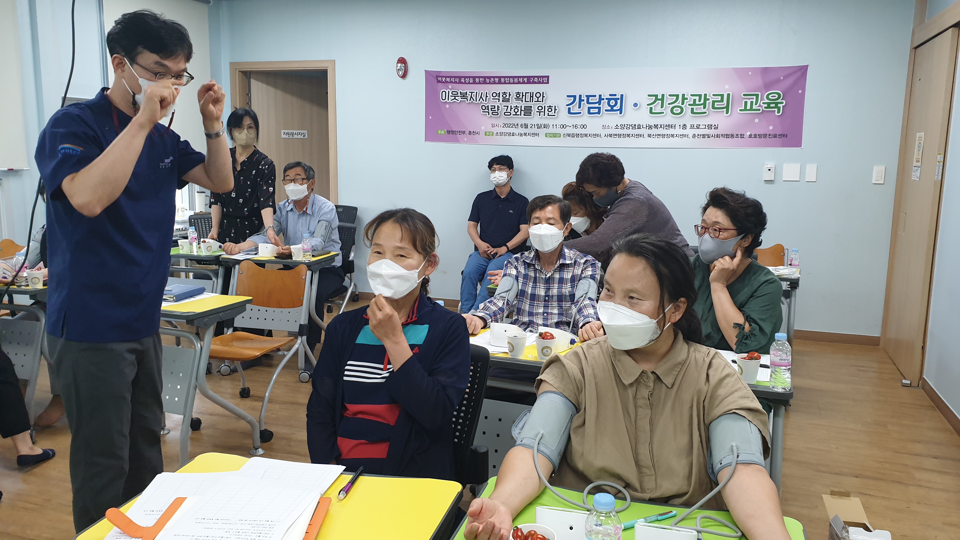 [강원사회복지신문 홍기한 기자]=K-water 소양강댐지사(지사장 오병동)가 설립한 소양강댐효나눔복지센터는 지난 8월 4일(목) 오전10시~12시에 2층 프로그램실에서 이웃복지사 역량강화를 위한 '어르신의 당뇨 관리(양창모 호호방문진료센터 센터장)' 교육을 했다. 이번 교육은 농촌마을어르신들이 이동의 불편으로 병원을 이...