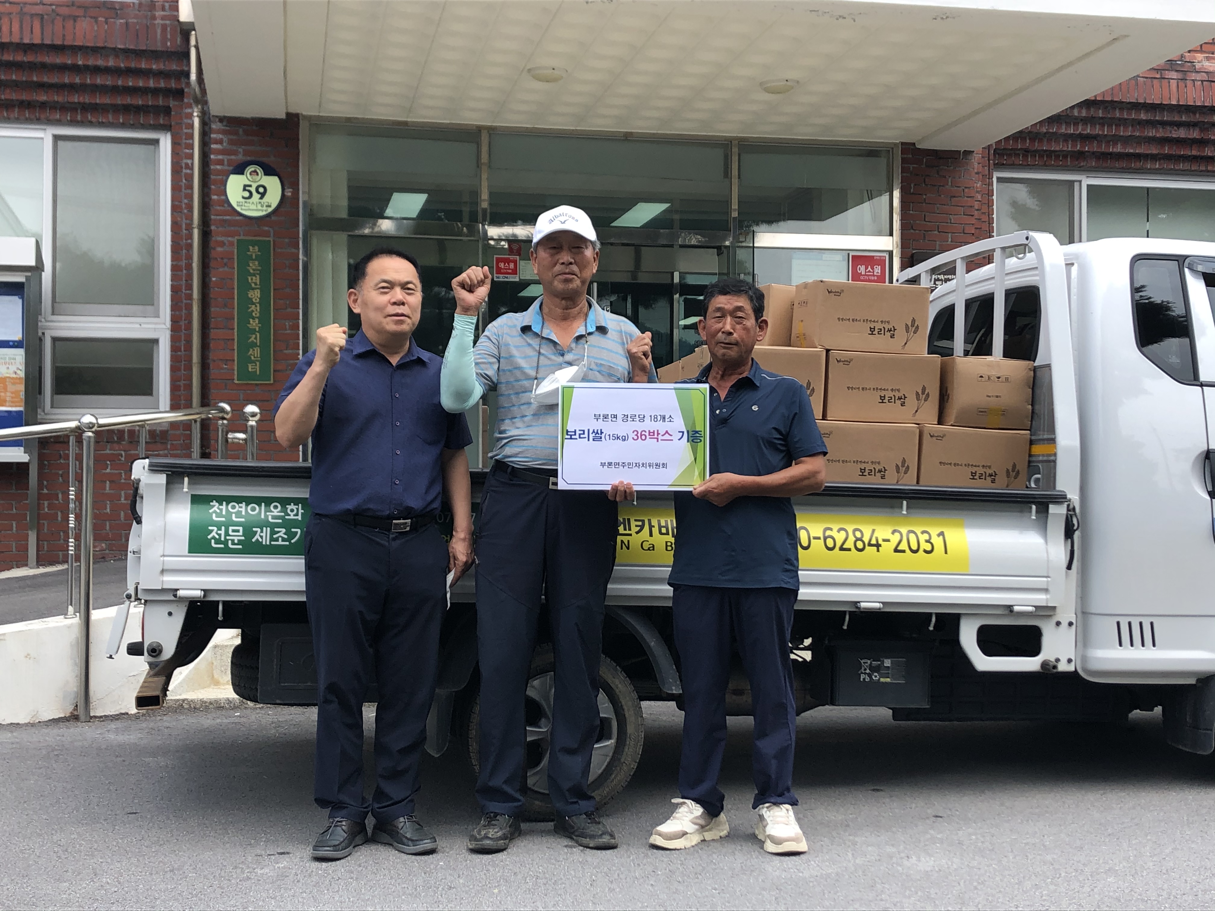 [강원사회복지신문 서은진 기자]=원주시 부론면 주민자치위원회(위원장 정해용)는 직접 수확한 보리쌀을 부론면 경로당 18개소(각 30kg)에 전달했다. 정해용 주민자치위원장은 "위원들이 땀 흘리며 직접 농사짓고 수확한 보리쌀을 어르신들에게 드릴 수 있어 기쁘다."라며, "보리쌀에 대한 추억도 회상하며 맛있게 드시길 바...