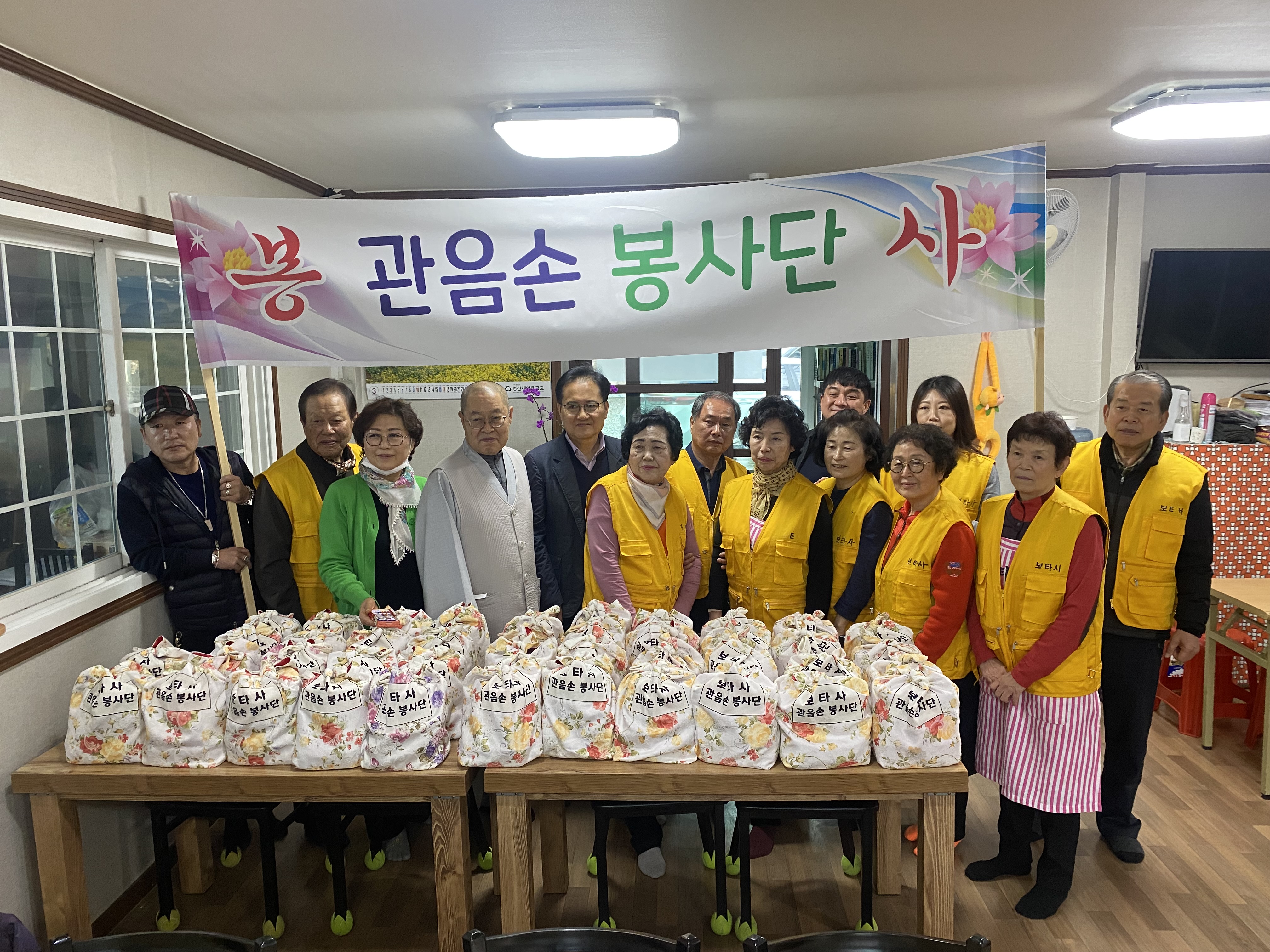 보타사 관음손 봉사단(단장 양영석, 주지 진철스님)은 지난 3월 28일 춘천시 관내 독거 어르신 및 중증 장애인 42가구에 직접 만든 반찬을 전달했다.