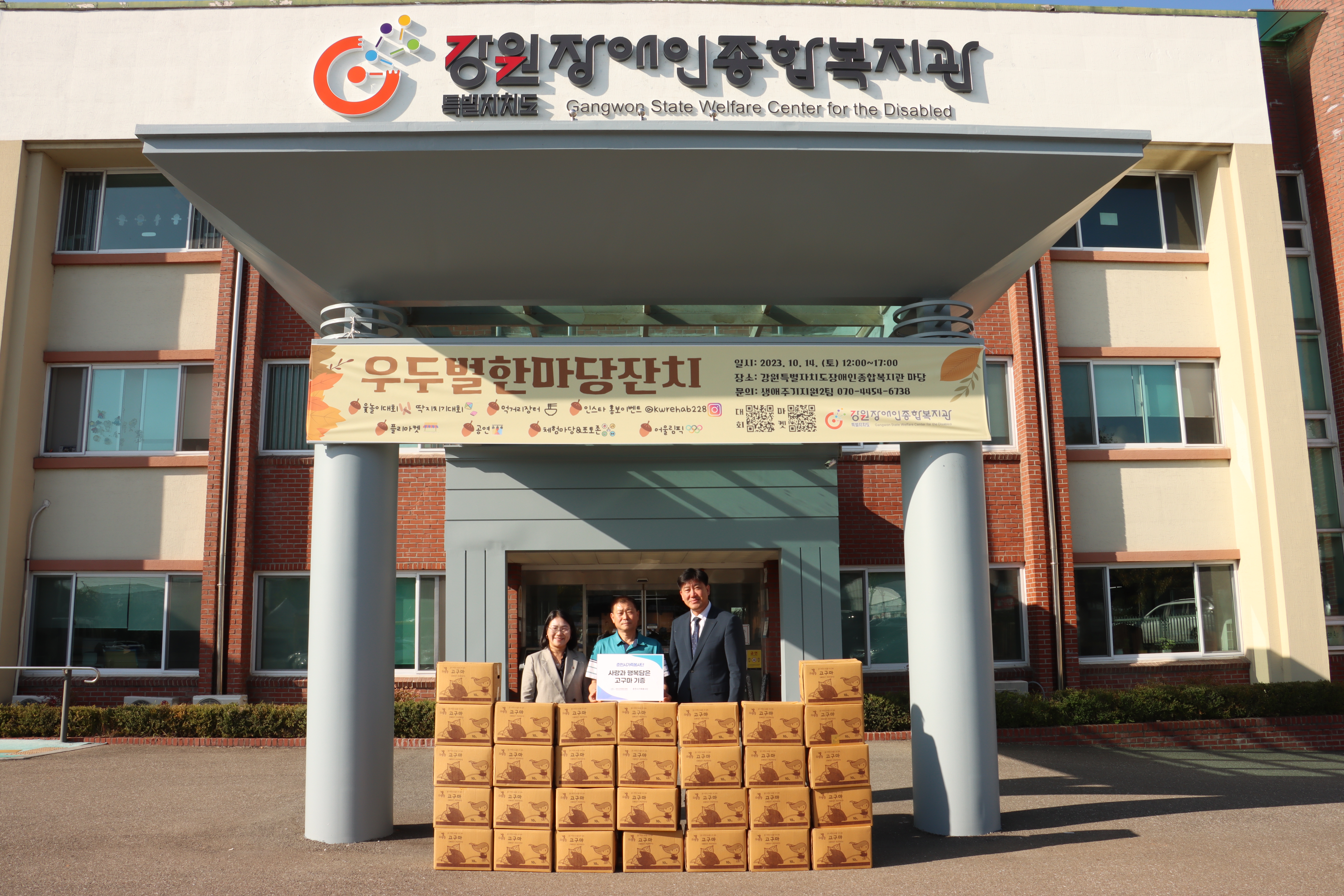 [강원사회복지신문 서은진 기자]=춘천시가족봉사단(단장 이성학)은 지난 10월 14일 강원도 내 저소득 장애인 가정을 위해 강원특별자치도장애인종합복지관(관장 엄정호)에 고구마 300kg을 전달했다. 강원특별자치도장애인종합복지관은 춘천가족봉사단에게 전달받은 고구마는 춘천, 양구, 화천 재가장애인 가정과 공동생화가정...