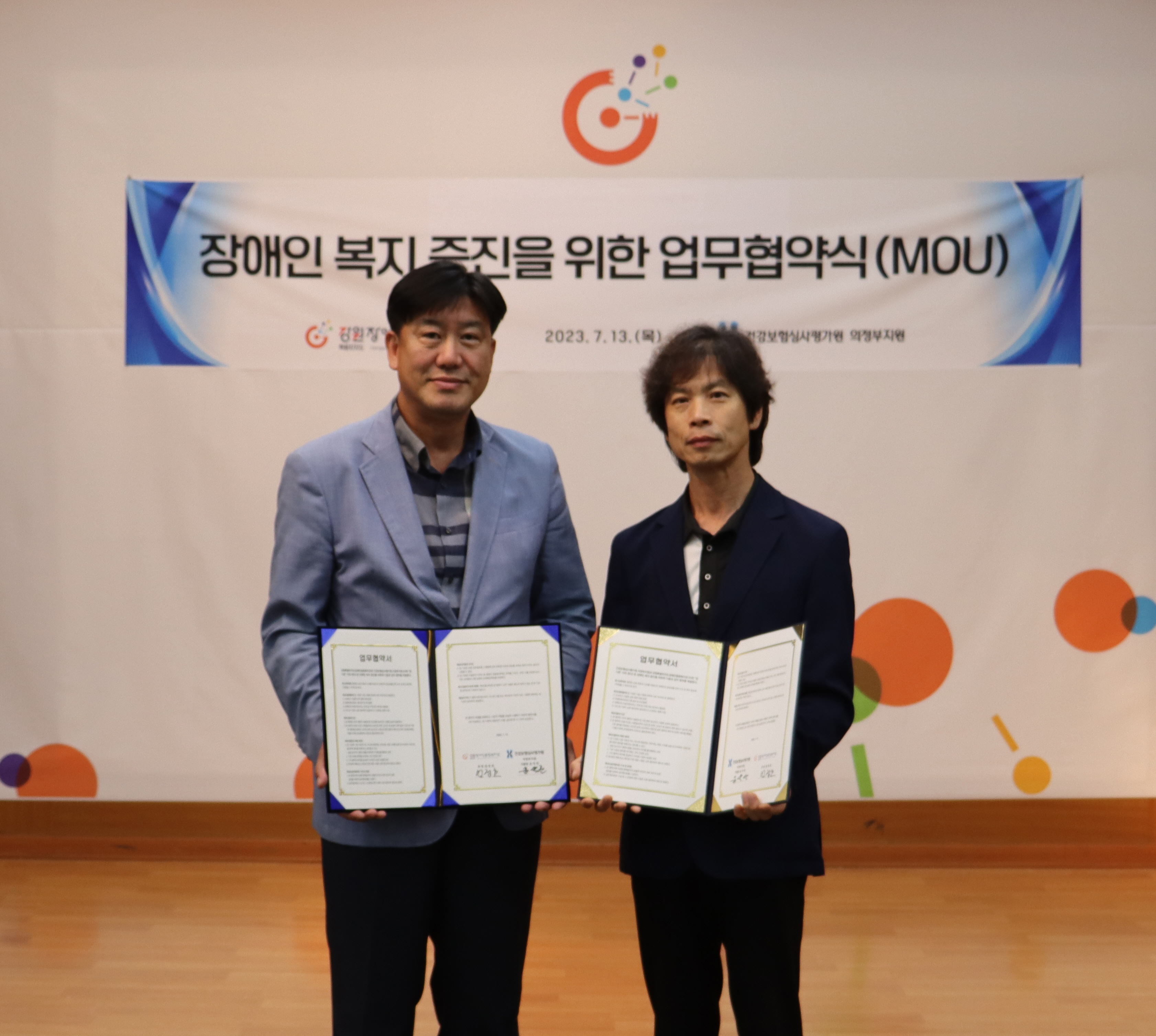 [강원사회복지신문 서은진 기자]=강원특별자치도장애인종합복지관(관장:엄정호)은 지난 7월 13일(목), 건강보험심사평가원 의정부지원(지원장:문덕헌)과 장애인복지증진을 위해 업무협약을 진행하였다. 양 기관은 업무 협약을 통해 장애인복지프로그램 참여 및 추진협력, 장애인자립지원서비스 연계, 기타 양 기관이 상호 협...