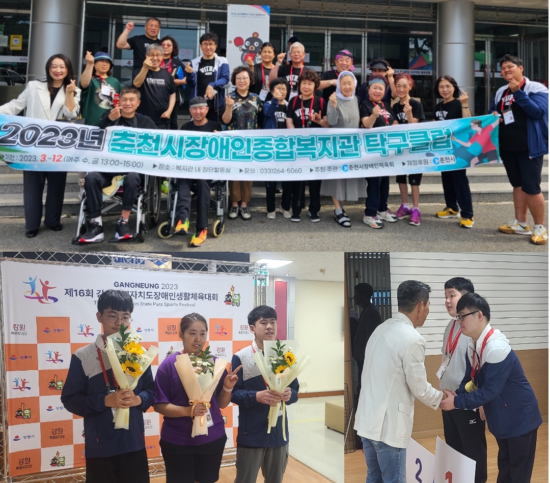 [강원사회복지신문 서은진 기자]=춘천시장애인종합복지관 소속 춘천시 대표 선수들이 지난 6월 14일(수)~6월 16일(금) 강릉시에서 열린 제16회 강원특별자치도 장애인생활체육대회에서 고장의 명예를 걸고 대회에 참가하여 선의의 경쟁을 거쳐 수영과 탁구 종목에서 좋은 성적을 보였다. 춘천시장애인종합복지관 아리벗 수영...