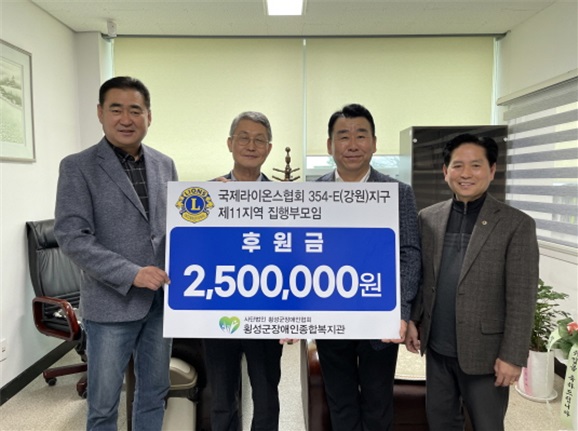 [강원사회복지신문 홍기한 기자]=국제라이온스협회 354-E(강원)지구 제11지역 집행부 모임(위원장 안민우)은 지난 4월 5일 14시에 횡성군장애인종합복지관(관장 박성길)을 방문하여 장애인식 개선 활성화를 위한 후원금 250만원을 전달했다. 이번 후원금은 제43회 장애인의 날을 기념하여 장애인의 권리와 이익 보장을 목적으...