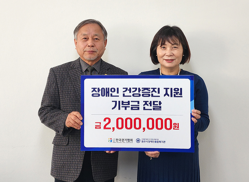 [강원사회복지신문 김도연 기자]=(사)한국걷기협회(회장 김인호)는 지난 12월 27일 원주시장애인종합복지관에 장애인들의 건강증진을 위해 사용해달라며 금2,000,000원을 기부하였다. (사)한국걷기협회는 원주시장애인종합복지관과 장애인의 날 걷기대회 행사 등을 함께하며 원주시 장애인들의 건강증진을 위하여 봉사를 지속...