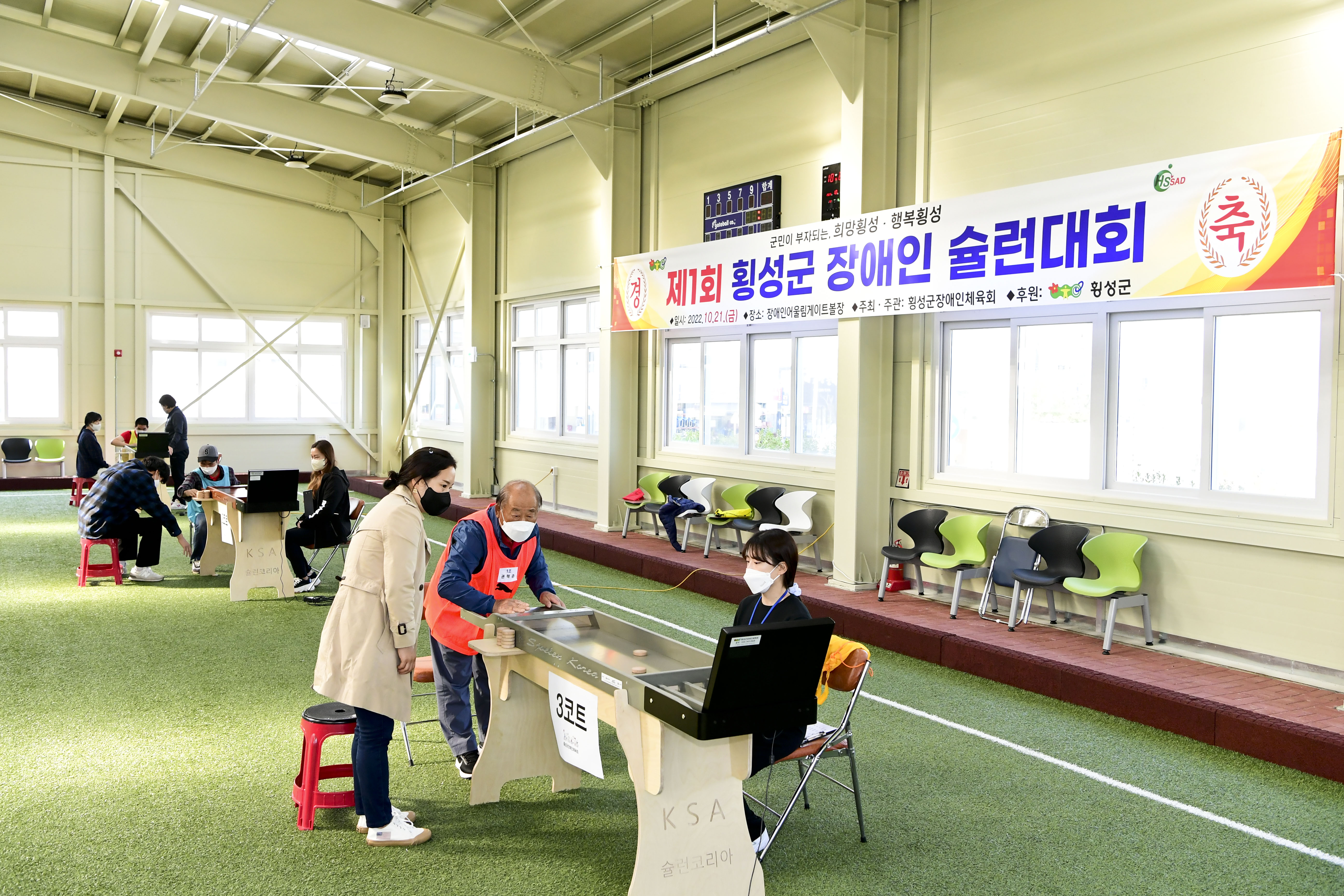 [강원사회복지신문 홍기한 기자]=횡성군장애인체육회(회장 김명기 횡성군수)는 지난 10월 21일 오전 9시 장애인어울림게이트볼장에서 '제1회 횡성군 장애인 슐런대회'를 개최했다.
