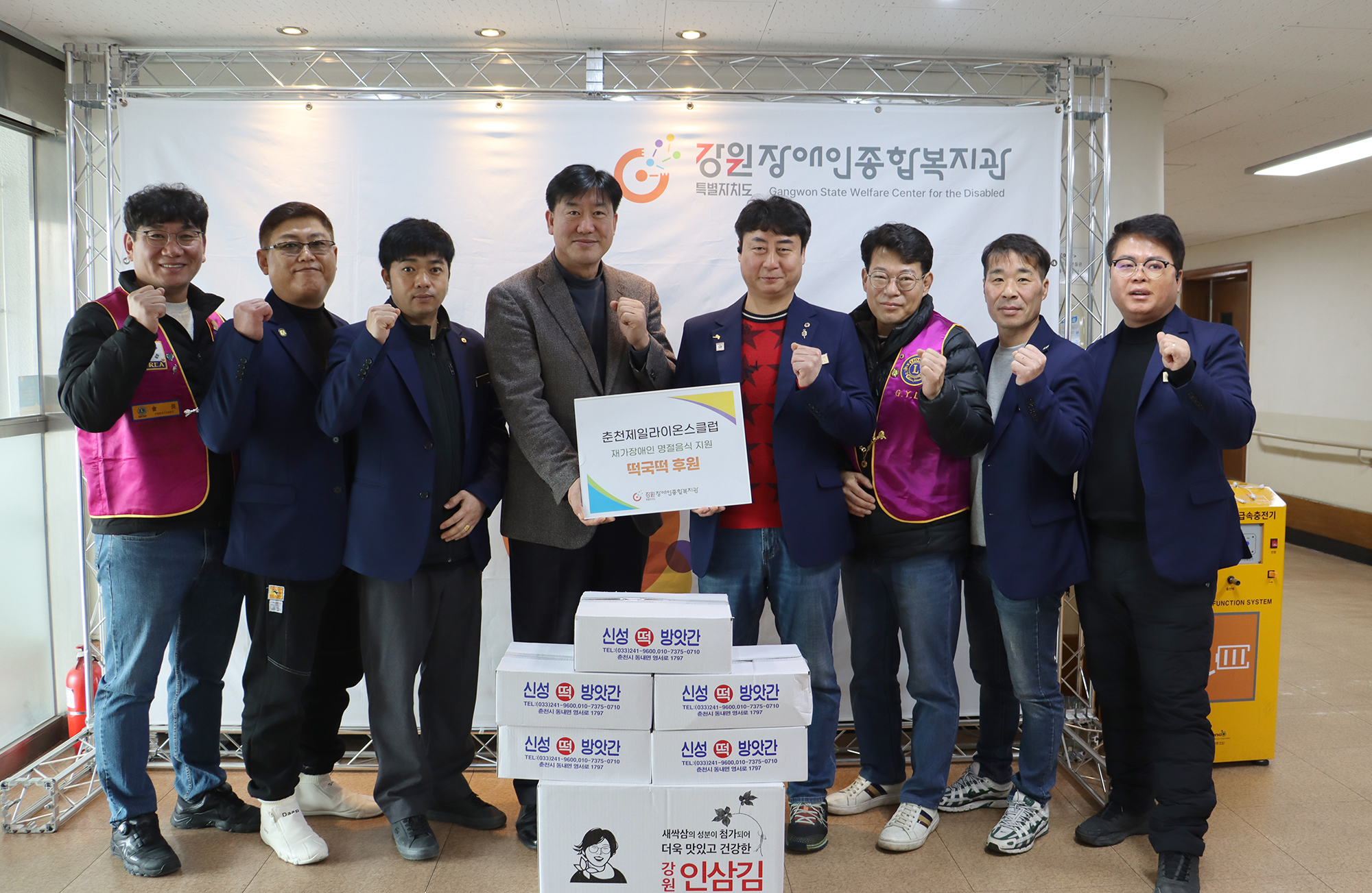 춘천제일라이온스클럽(회장:오제선)은 강원특별자치도장애인종합복지관(관장 엄정호)에 방문하여 사랑의 후원물품 나눔 전달식을 진행하였다. 춘천제일라이온스클럽은 복지관과 함께하며 공동생활가정 보일러 공사, 각종 행사 물품 후원 등 다양한 활동을 진행해왔다. 이번 후원물품은 설 명절을 맞아 행복하고 풍성한 설 명...