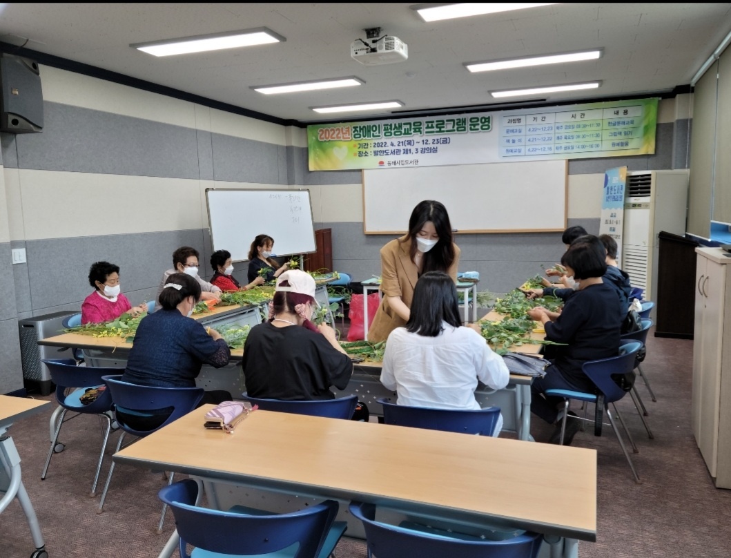 [강원사회복지신문 김종한 기자]=한글 문해교육 및 다양한 독서 문화프로그램 운영 동해시(시장 심규언) 동해시립도서관은 장애인의 사회참여 확대와 평생교육을 통해 행복한 자아실현의 계기를 마련하기 위해 운영 중인 '장애인 독서문화 프로그램' 상반기 사업을 성공적으로 마쳤다고 밝혔다. 도서관은 지난 4월부터 7월까...