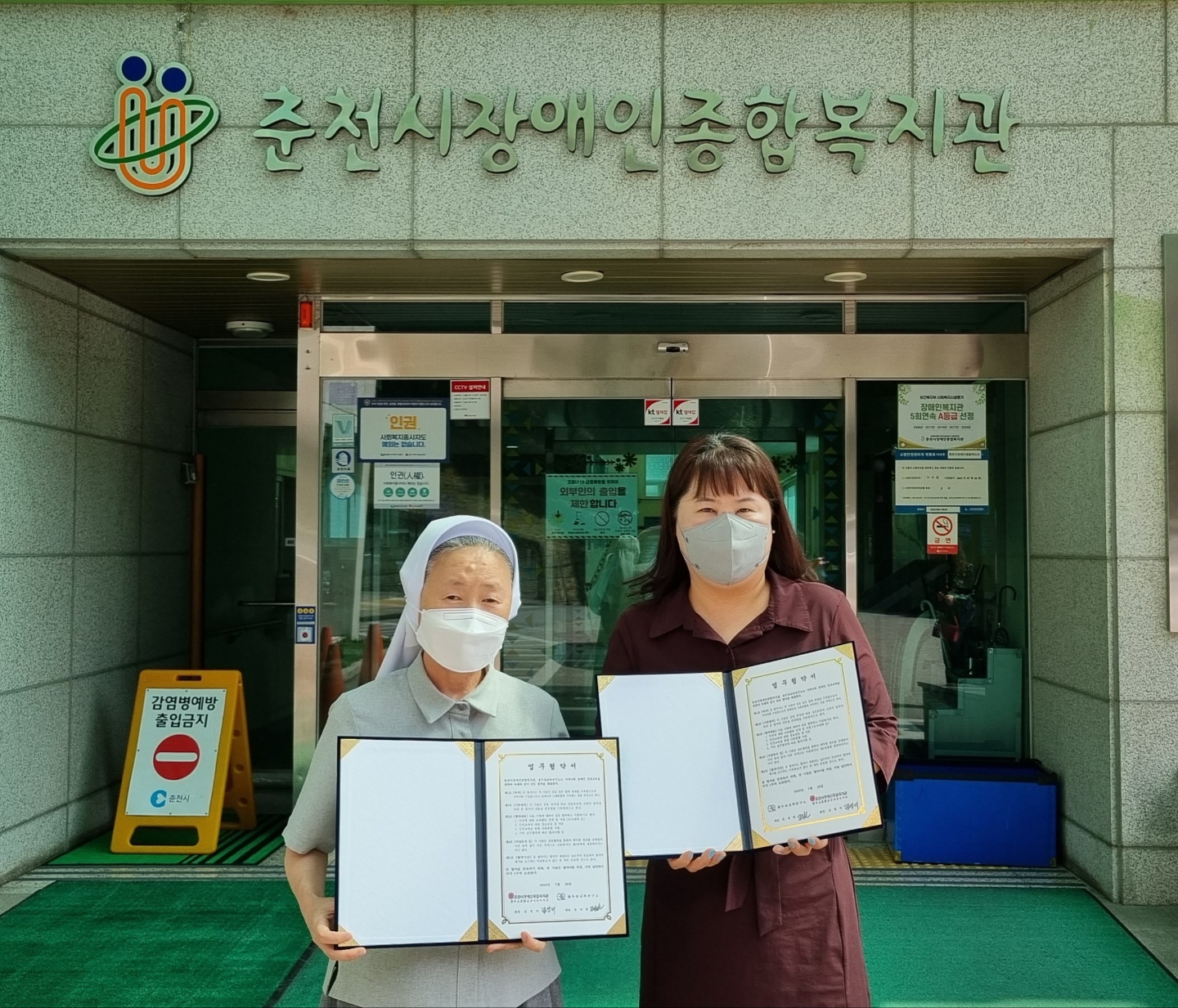 [강원사회복지신문 홍기한 기자]=춘천시장애인종합복지관(관장:김영미)은 지난 7월 28일 올두성교육연구소(대표:전세원)와 업무협약을 체결하였다. 본 협약식은 각 기관의 상호 업무 협력 체계를 구축함으로써, 지역사회 구성원으로서 장애인의 사회통합에 기여하는 것을 목적으로 마련되었다. '2022년 장애인평생학습도시 운...