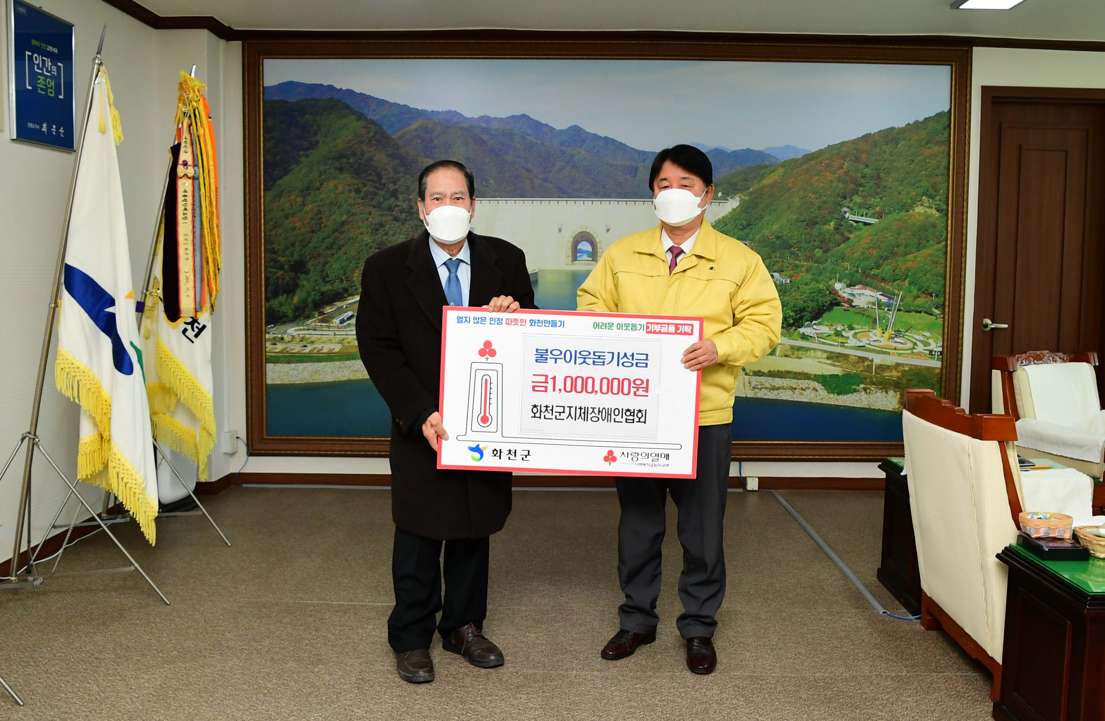 [강원사회복지신문 이정환 기자]=화천군 지체장애인협회(회장:고창남)는 지난 1월 3일 최문순 화천군수를 방문해 이웃돕기 성금 100만원을 기탁했다.