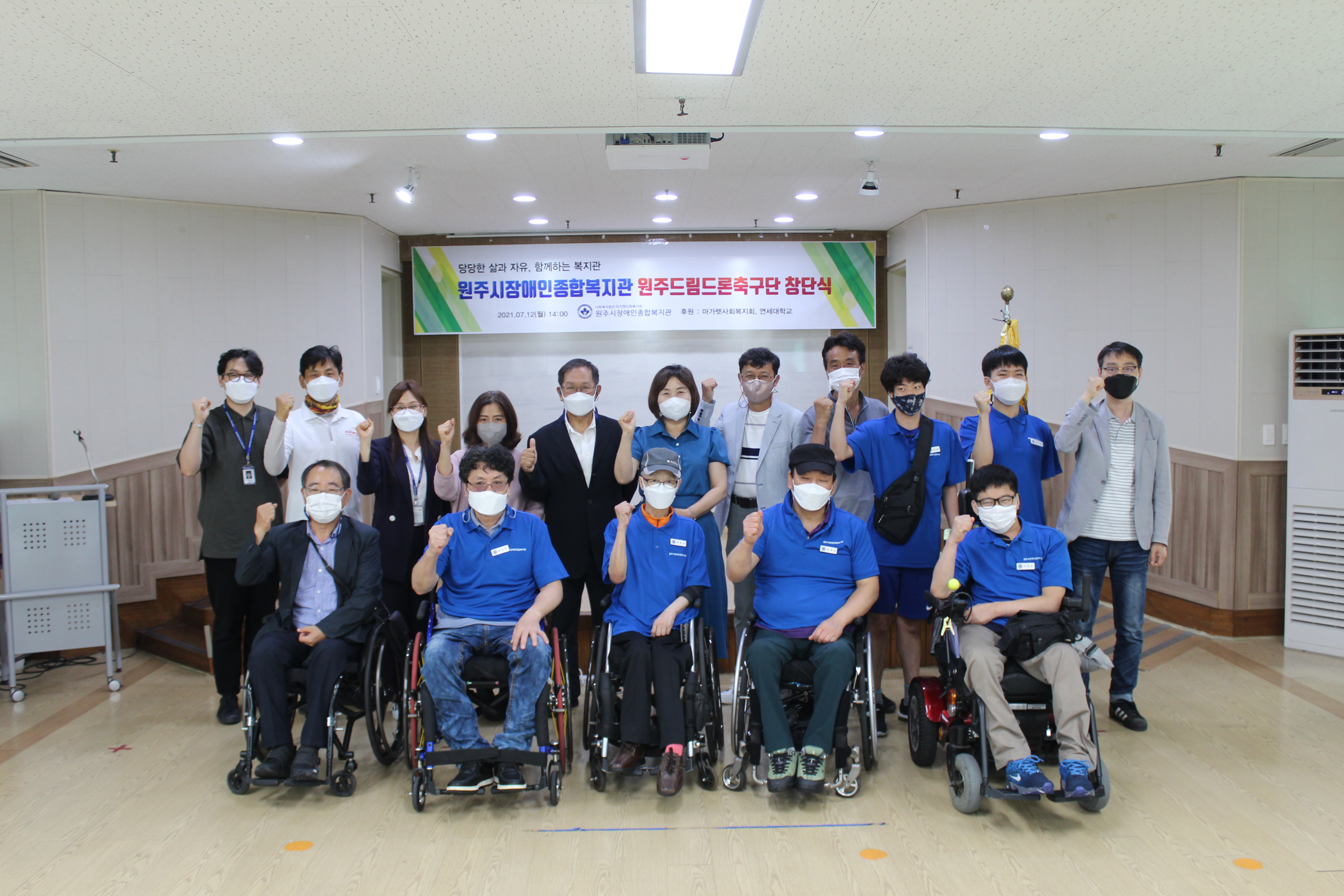 [강원사회복지신문 서은진 기자]=원주시장애인종합복지관은 지난 7월 12일 원주드림드론축구단 창단식을 진행하였다. 코로나19 상황인 관계로 많은 분들이 참여하지 못했지만, 원주드림드론축구단의 창단을 축하해주기 위해 선수들과 내빈 분들이 한자리에 모여 2020년부터 지금까지의 경과보고와 드론 시연, 선수들에게 직접...