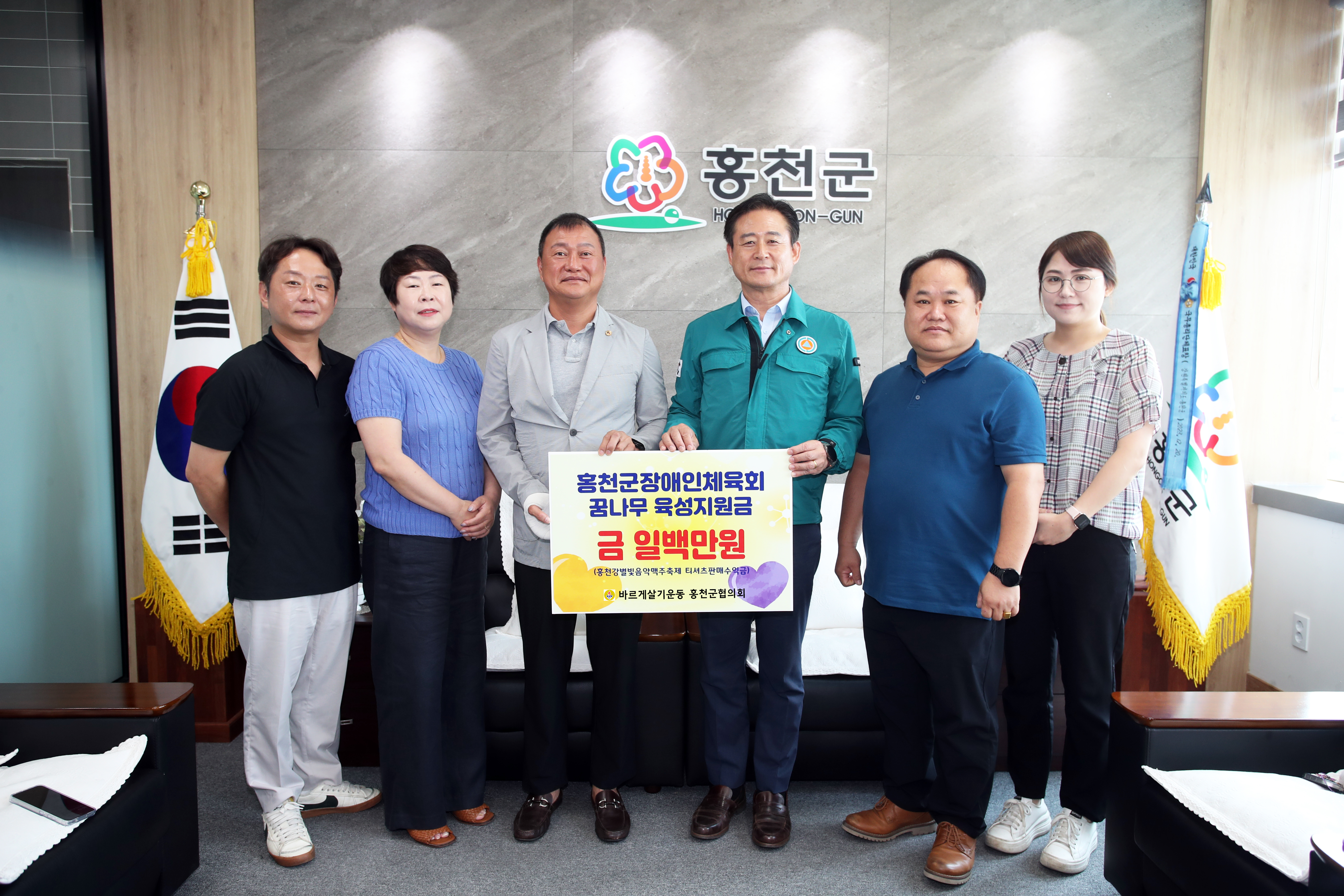 바르게살기운동홍천군협의회(회장 황준구)는 지난 8월 20일 홍천군청을 방문해 성금 100만 원을 기탁했다. 바르게살기운동홍천군협의회는 지난 홍천강 별빛음악 맥주축제 티셔츠 판매와 냉족욕 등 수익금의 일부인 100만 원을 홍천군장애인체육회 꿈나무 육성지원금으로 기부했다. 황준구 회장은 “홍천강 별빛음악 맥주축제...