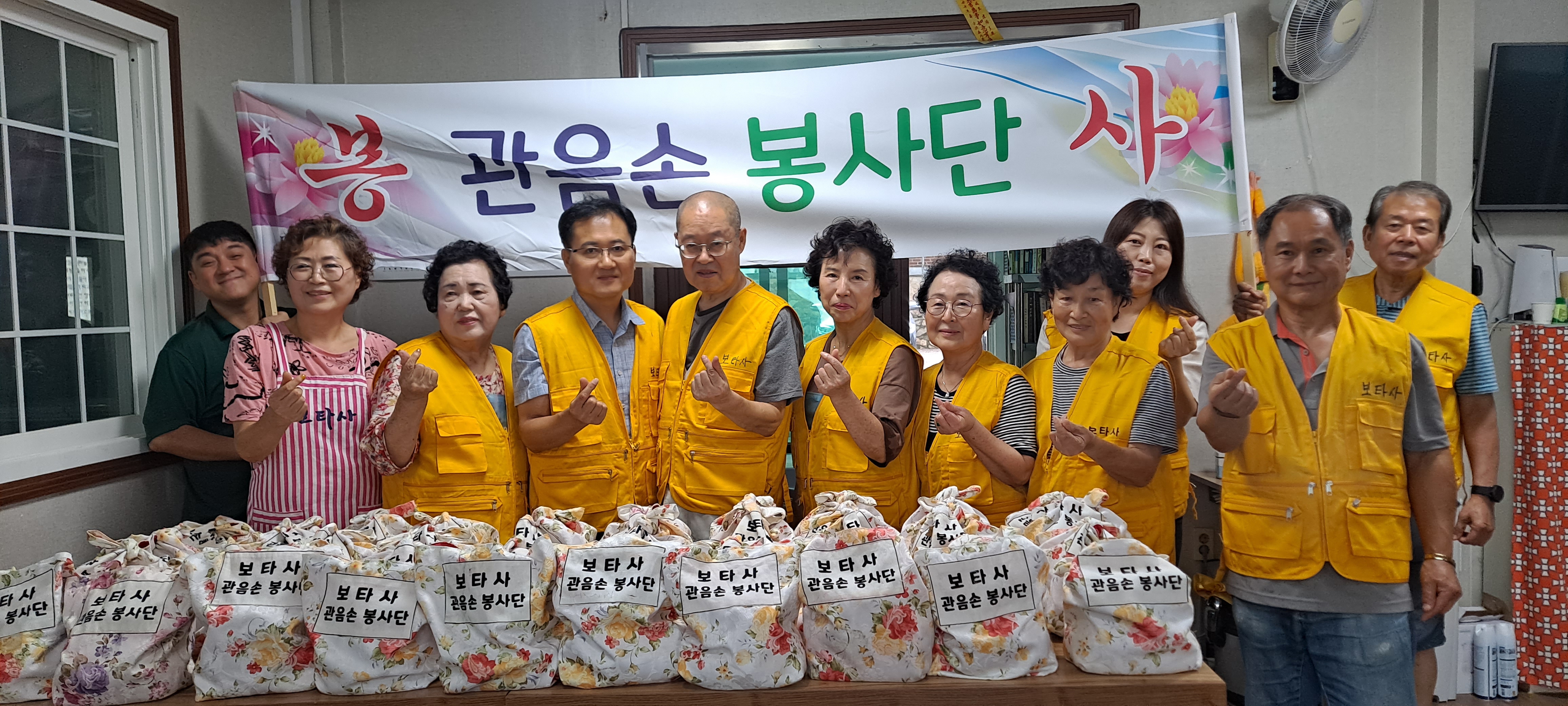 보타사 관음손 봉사단(단장 차경익, 주지 진철스님)은 지난 8월 22일 춘천시 관내 독거 어르신 및 중증 장애인 40가구에 직접 만든 반찬을 전달했다.