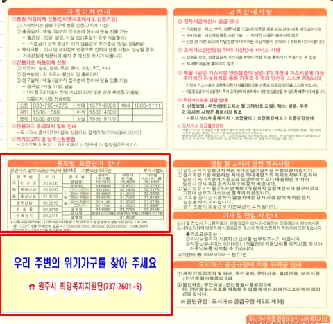 [강원사회복지신문 홍기한 기자]=원주시는 4월부터 공과금고지서를 활용하여 위기가구 발굴 및 지원에 나선다고 밝혔다. 이번 사업은 복지사각지대 발굴시스템에서 드러나지 않는 은둔형 위기가구 발굴을 위해 시민과 밀접한 공과금고지서를 활용해 추진한다. 고지서 뒷면 하단에 '우리 주변의 위기가구를 찾아주세요'라는 안...