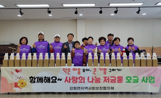 [강원사회복지신문 홍기한 기자]=작은마음 모아 큰 기쁨 그리기! 횡성군 강림면지역사회보장협의체(민간위원장:김성미)에서는 도약의 해인 계묘년을 맞이하여 주민들의 자발적인 기부생활화 및 주민중심 맞춤형 복지 도약의 계기를 마련하고자, '작은마음 모아, 큰기쁨 그리기'라는 부제로 나눔 저금통 모금사업을 2023년 연...