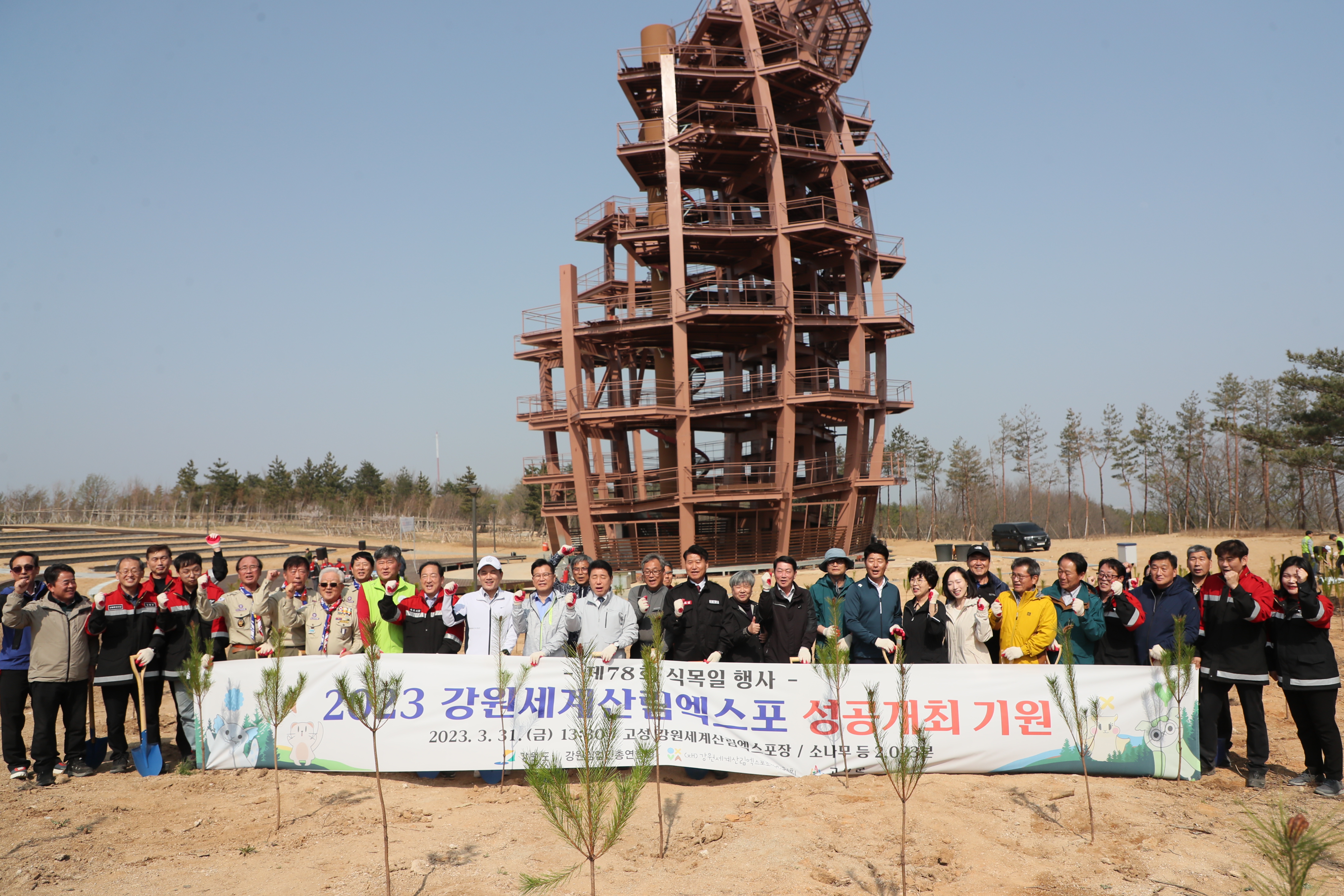 [강원사회복지신문 홍기한 기자]=2023 강원세계산림엑스포 성공개최 기원 강원도는 지난 3월 31일(금) 김진태 강원도지사를 비롯하여 강원도의회 농림수산위원회, 동부지방산림청, 강원임업인총연합회, 강원세계산림엑스포조직위원회, 산림조합중앙회 강원도지회 등 130여명이 참여하여 고성군 토성면에 위치한 '강원세계산림...
