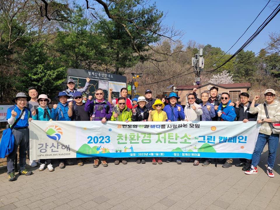 [강원사회복지신문 홍기한 기자]=출향도민들의 친목 및 봉사단체인 강산해(회장:이병관)는 지난 4월 1일 오전 서울 청계산 일대에서 쓰레기 줍기와 자연가꾸기 일환으로 '2023 친환경 저탄소 그린캠페인'을 전개했다. 강원도의 산과 바다를 사랑하는 출향민들의 모임인 강산해는 전임 회장인 박영화변호사(전 서울지법 부장판...
