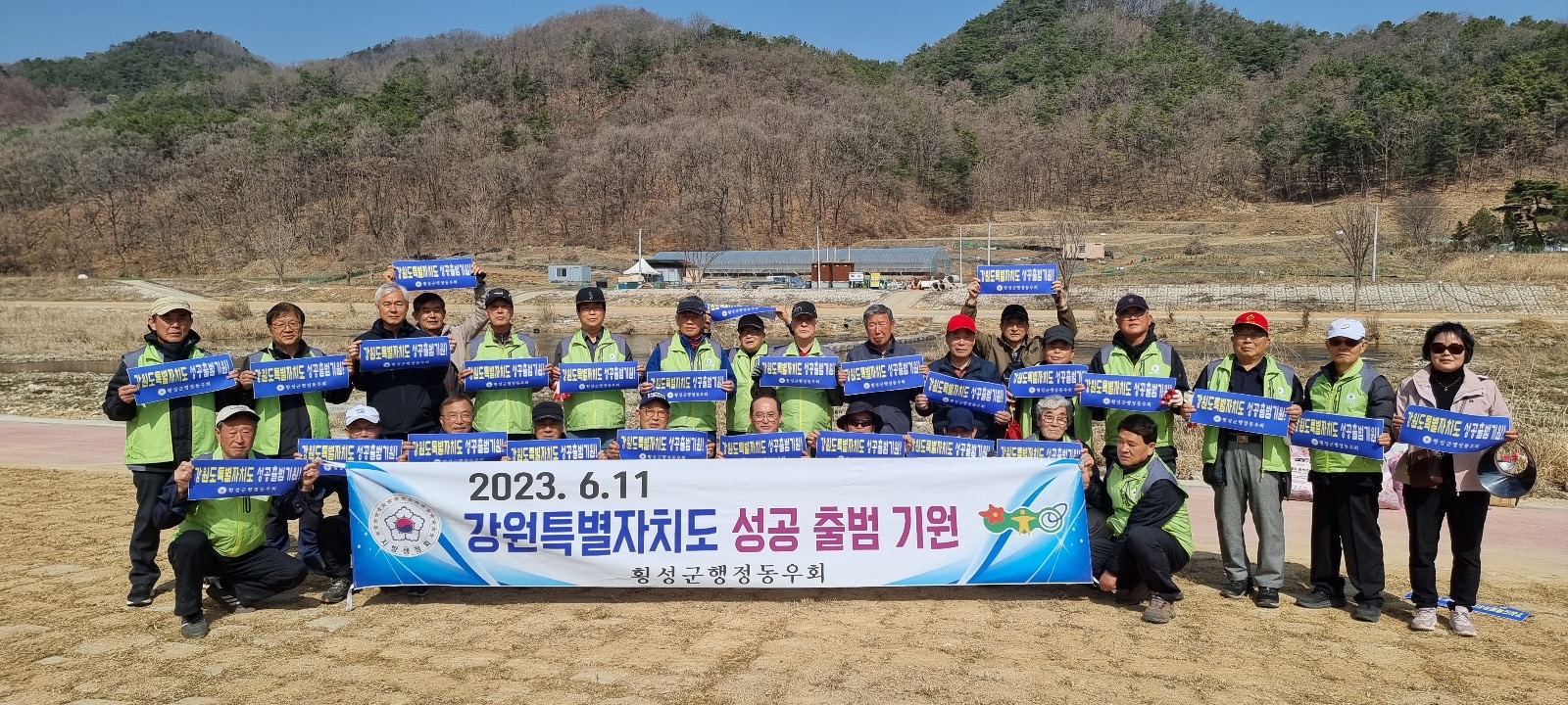 [강원사회복지신문 홍기한 기자]=횡성군 행정동우회(회장 원팔연)는 지난 3월 21일 섬강변에서 원팔연 회장 등 회원 30여 명이 참석한 가운데 자원봉사의 날 발대식을 갖고 본격적인 활동에 들어갔다. 퇴직 공무원들로 구성된 횡성군 행정동우회는 현재 100여명의 회원들이 활동하는 중이며 매주 2회 자원봉사의 날을 정하여...